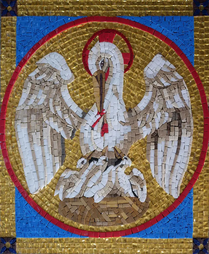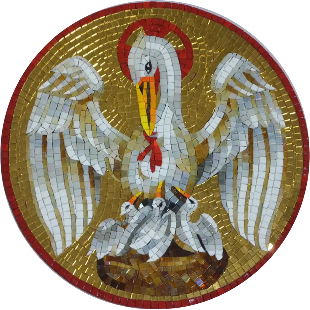 Introducing our stunning Religious Art Mosaic - Holy Pelican, a captivating piece that effortlessly blends faith and artistry. This exceptional mosaic portrays a serene holy pelican nurturing its young, symbolizing selflessness and divine care, set against a radiant golden glass background. Crafted with meticulous attention to detail, this Religious Art Mosaic - Holy Pelican is designed to inspire and uplift any space it graces. Whether adorning the walls of your living room, hallway, or even an outdoor garden, this mosaic serves as a timeless reminder of the beauty of faith and the sacred bond of motherhood. The vibrant colors and intricate design make this mosaic not only a decorative piece but also a conversation starter that reflects your beliefs and values. Perfect for individuals seeking to enhance their spiritual sanctuary or for those looking to give a unique gift to a loved one, the Religious Art Mosaic - Holy Pelican is versatile enough to suit both interior and exterior settings. Easy to hang and made from durable materials, this artwork will stand the test of time, allowing you to cherish its beauty for years to come. Elevate your home decor with this exquisite Religious Art Mosaic - Holy Pelican and let it be a focal point of inspiration and tranquility in your environment.