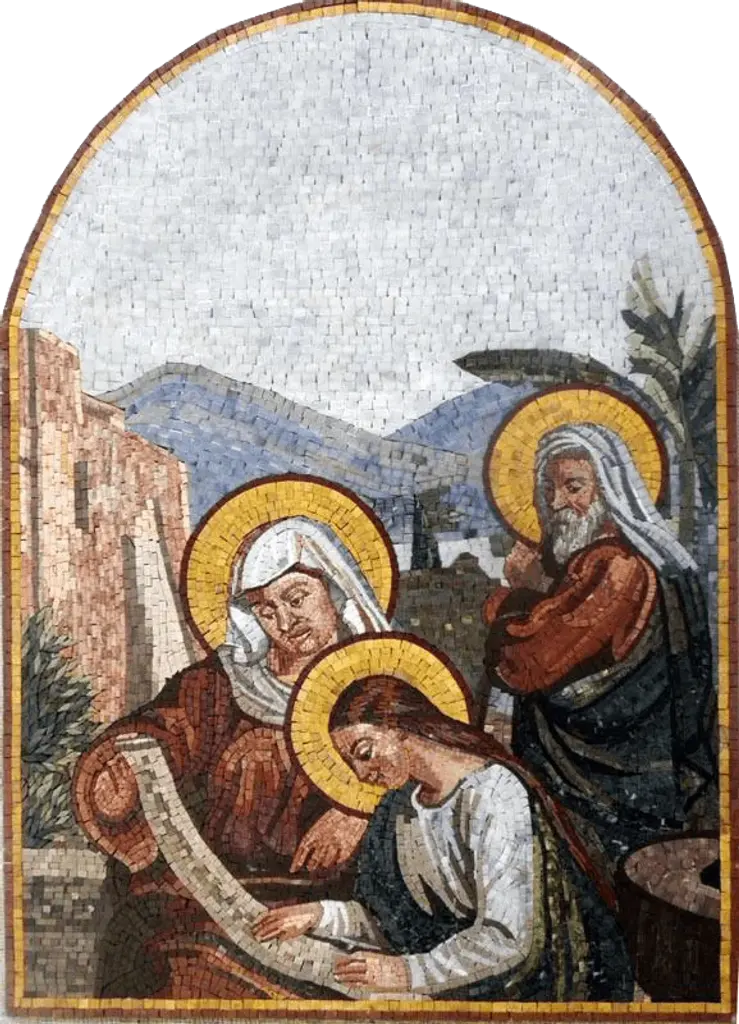 Introducing our exquisite Religious Marble Mosaic, a breathtaking tribute to the Nativity scene that captures the essence of love, faith, and devotion. This meticulously crafted artwork features Baby Jesus in the crib, surrounded lovingly by Mary and Joseph, embodying the heartwarming story of Christmas.Each piece of this stunning mosaic is fully handmade, ensuring that every detail is infused with care and artistry. Crafted from natural stones and hand-cut tiles, it reflects both the beauty of nature and the skill of traditional craftsmanship. The rich textures and vibrant colors of the stones come together to create a visual masterpiece that not only decorates your space but also enriches your spiritual environment.Ideal for any setting, this Religious Marble Mosaic serves as a perfect focal point in a living room, a thoughtful gift for holidays or celebrations, or a cherished addition to your personal altar. Its timeless design resonates with individuals seeking to express their faith and appreciate the artistic interpretation of one of the most sacred stories in history.Designed to inspire awe and reflection, this mosaic encourages viewers to connect with the purity and grace of the Holy Family. Each glance at this artwork invites contemplation and reverence, making it a meaningful piece for both personal enjoyment and communal worship.Transform your space with the Religious Marble Mosaic and let it serve as a constant reminder of the love that binds us all. Elevate your decor and enrich your spiritual journey with this one-of-a-kind handmade masterpiece that celebrates the significance of faith in our lives.
