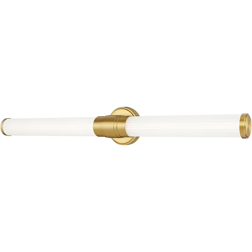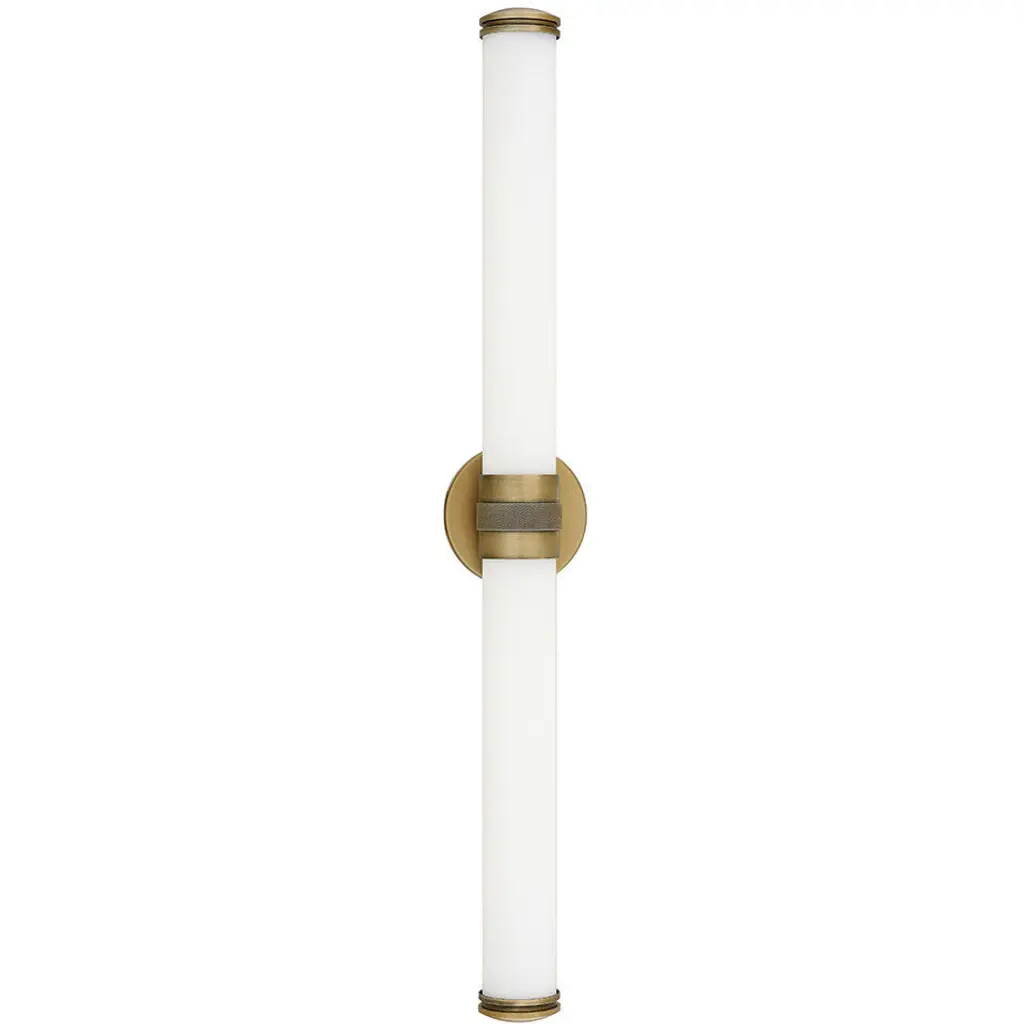 Remi's slim profile and sophisticated details seamlessly merge with LED technology to master both form and function. The etched white glass cylinder is finely detailed with precise, stepped end caps, and the cast knurled bracelet in luxe finish options is artfully crafted with vintage appeal. This chic, transitional design ensures Remi's ability to complement a wide variety of bath or interior spaces.