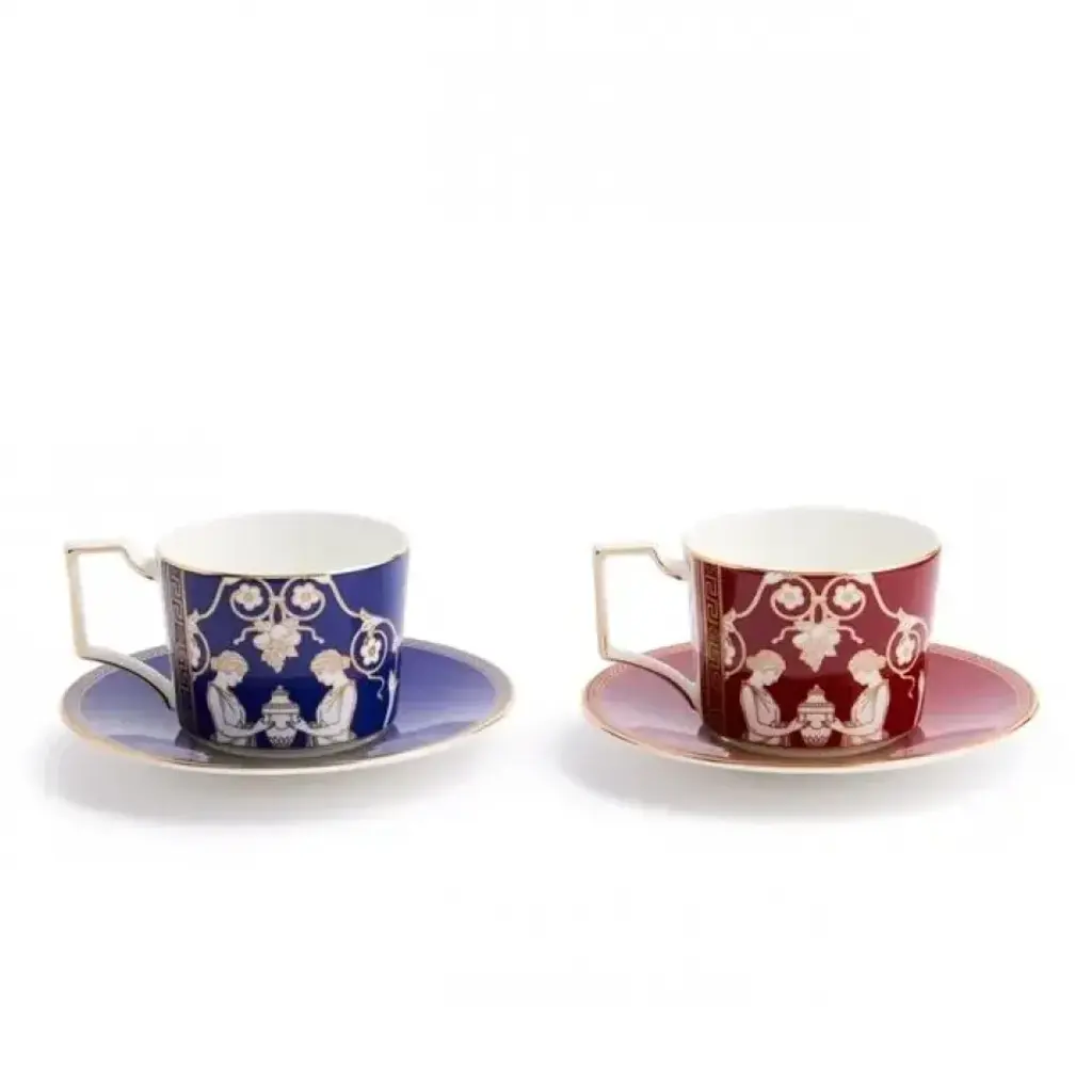 Renaissance Mix Accents Renaissance Mix Teacup Saucer 250ml 8.45oz Set Of 2 Gold/red