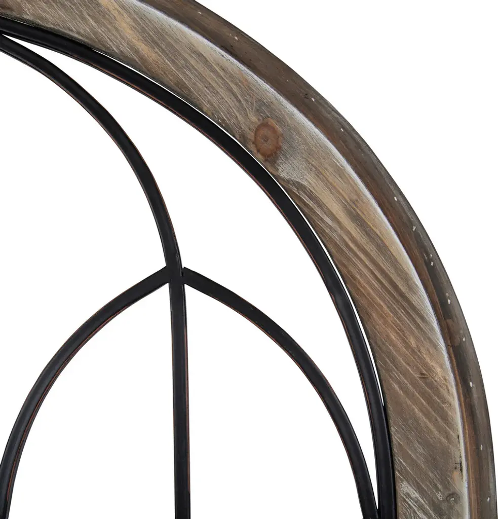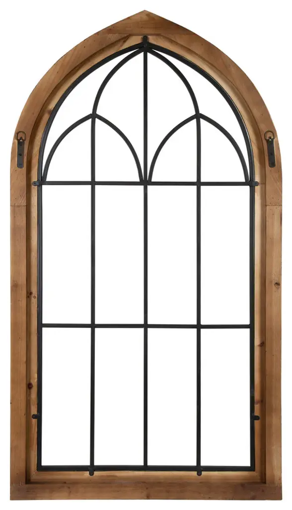 Embrace the romantic look of traditional shabby chic design with the Rennell Wood and Metal Window Pane Arch Wall Decor. A light rustic wood finish plays up the beautiful interior black metal window design and promotes the lovely sculptural beauty of it. Exhibit on its own or with two or three side-by-side for a striking arrangement on a primary wall.• Offers a romantically shabby-chic style for your traditional, transitional or casual home decor• Create an impressive decorative look above a mantle or bed. It''s the perfect wall accent for so many places in your home• Measures 48-inches tall x 26.5-inches wide. It has a D-ring hardware system attached to the back for easy wall display• Make a statement using 2 or more of these panel accents to create a gorgeous focal point on a feature wall• The frame is made of a solid wood that is built to last while the rustic finish gives it a beautiful antique appeal