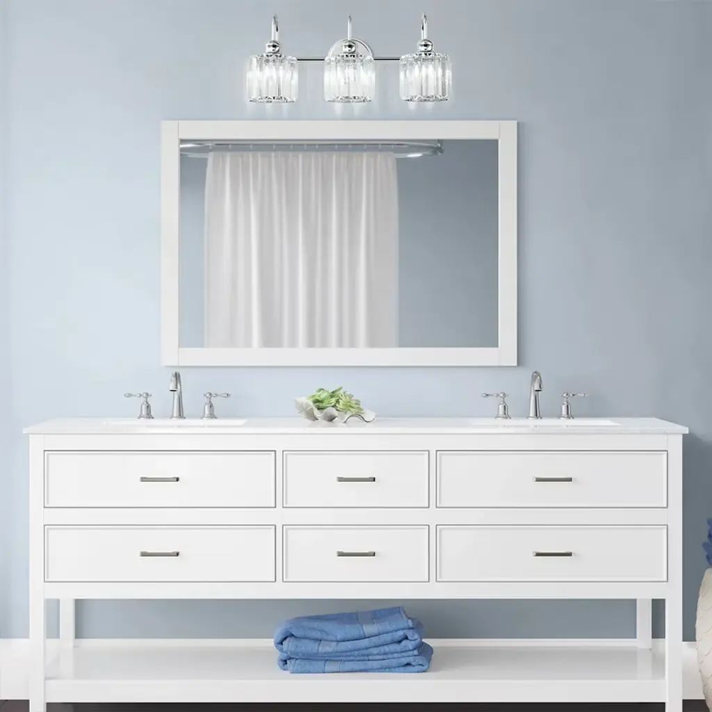 Elevate your bathroom or bedroom with this exquisite vanity light fixture, blending modern sophistication with timeless elegance. Choose between a sleek black fixture with antique brass cups or silver chrome hardware adorned with clear crystals to reflect your personal style. Illuminate your space with captivating crystal shades and versatile design, offering soft romantic lighting or bright task illumination to suit your needs. Upgrade your decor with this sophisticated fixture, transforming your space into a stylish and comfortable haven.