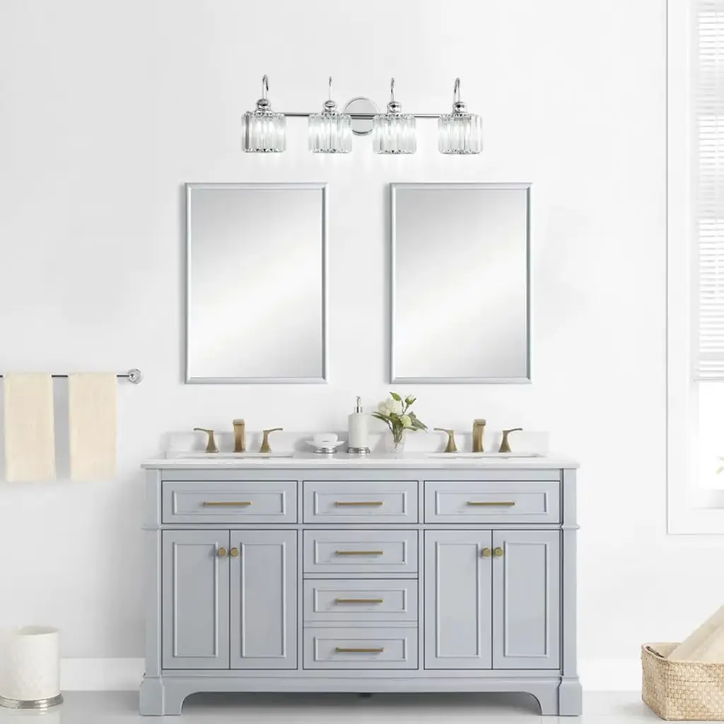 Elevate your bathroom or bedroom with this exquisite vanity light fixture, blending modern sophistication with timeless elegance. Choose between a sleek black fixture with antique brass cups or silver chrome hardware adorned with clear crystals to reflect your personal style. Illuminate your space with captivating crystal shades and versatile design, offering soft romantic lighting or bright task illumination to suit your needs. Upgrade your decor with this sophisticated fixture, transforming your space into a stylish and comfortable haven.