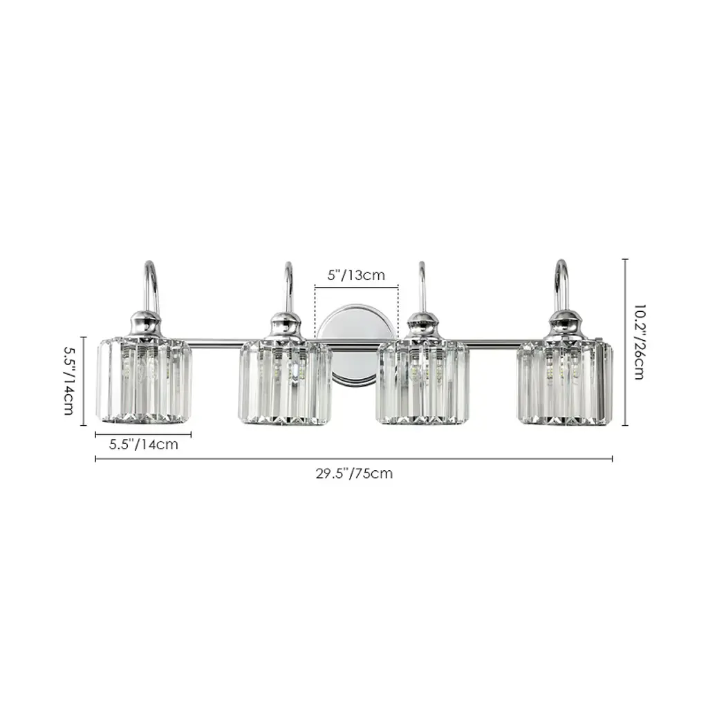 Rennnsan Arven 29" Hardwired 4 -Light Crystal Dimmable Contemporary Dimmable Vanity Light In Chrome