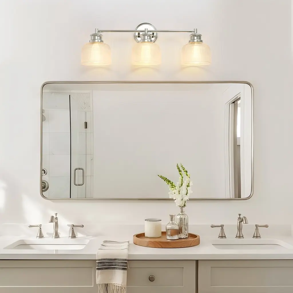Enhance your vanity area with this 23" mid-century modern light, showcasing three dome-shaped textured glass shades that add depth and character. The clean lines and warm metal finish bring a retro charm that blends seamlessly into contemporary interiors. Designed with dimmable functionality, it lets you adjust brightness for the perfect ambiance, whether you're getting ready in the morning or winding down at night. Includes all mounting hardware for a quick, hassle-free installation. Ideal for style-conscious homeowners who seek both form and function.