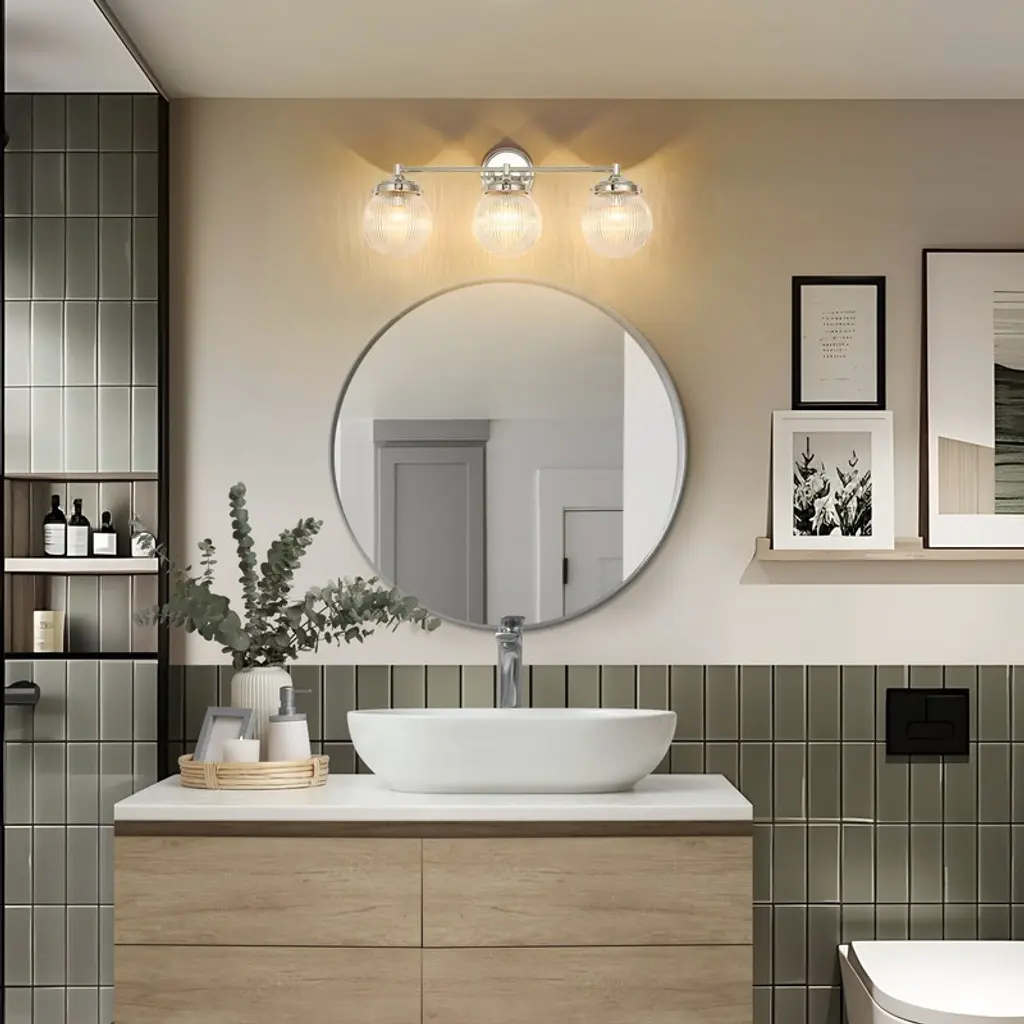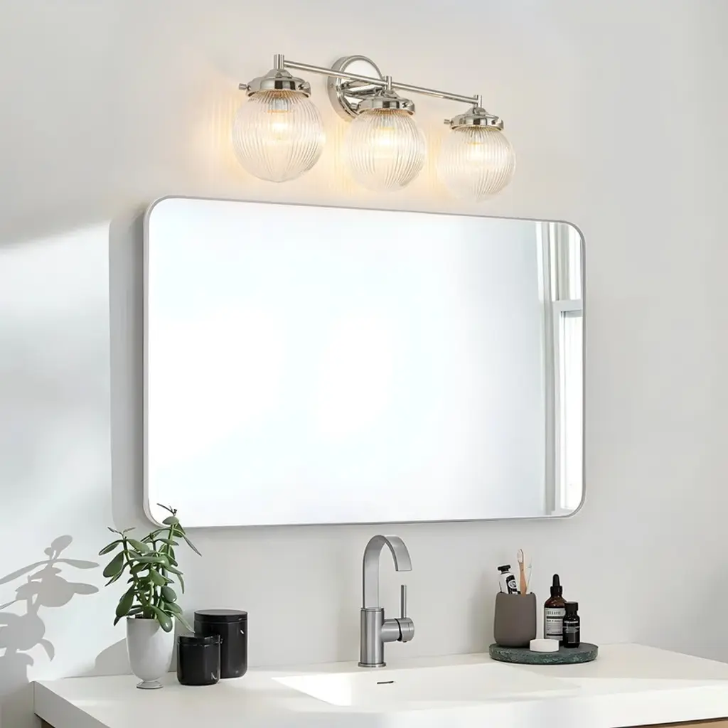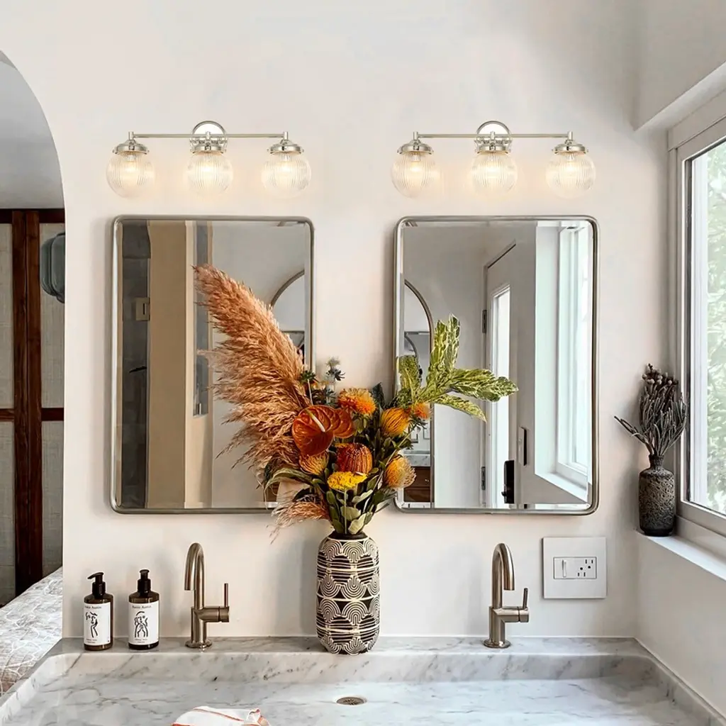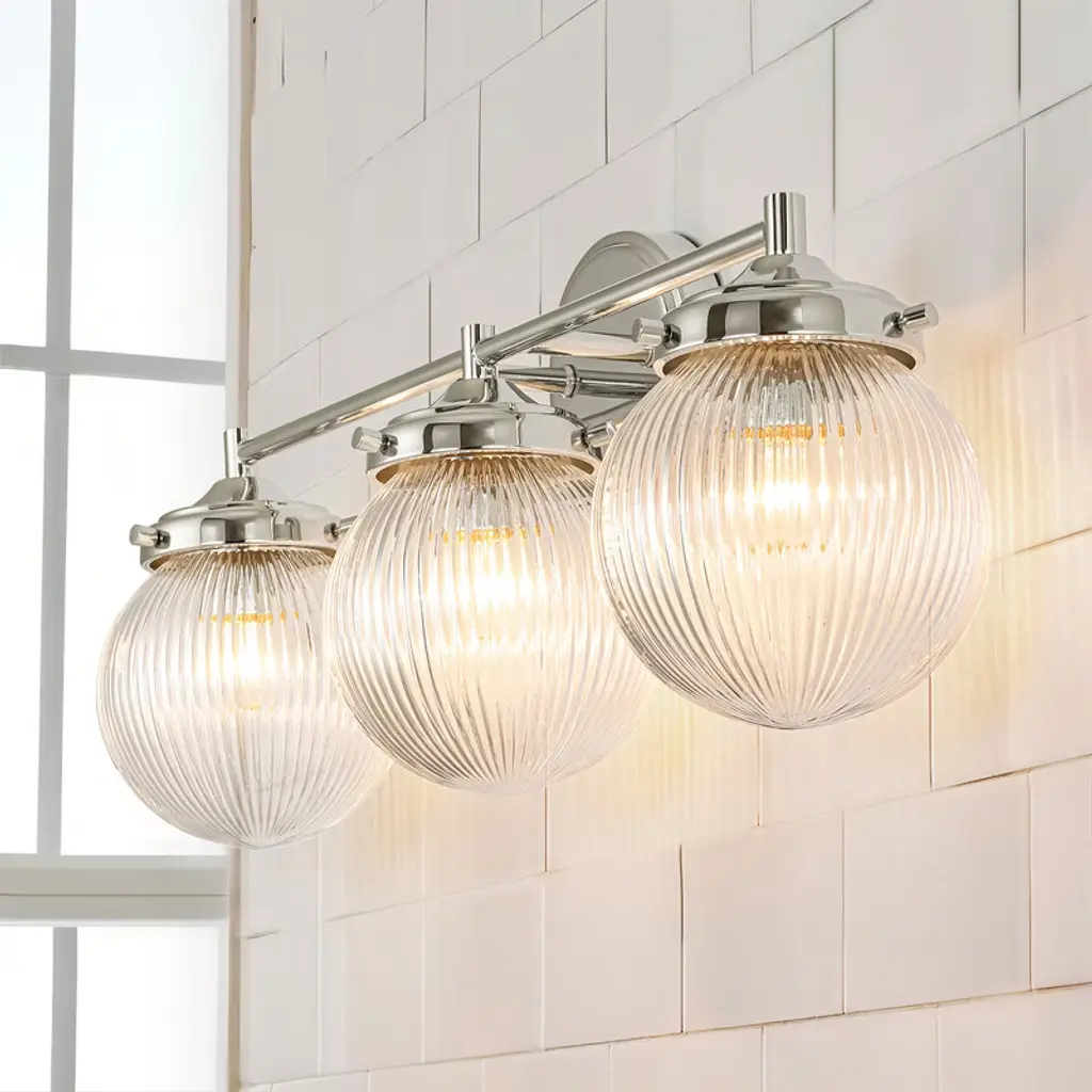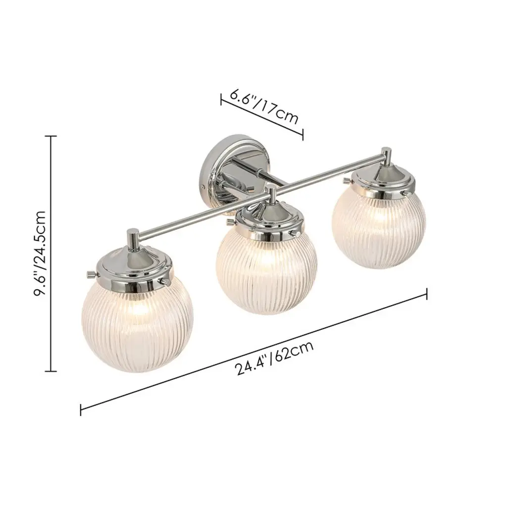 Illuminate your space with this 24" mid-century modern vanity light, featuring three textured glass globes that soften and diffuse light beautifully. Designed with dimmable functionality for customizable brightness and easy installation with all necessary hardware included. Perfectly blending vintage charm and contemporary style, this fixture adds warmth and sophistication to any bathroom or dressing area, catering to design-conscious homeowners seeking both elegance and practicality.