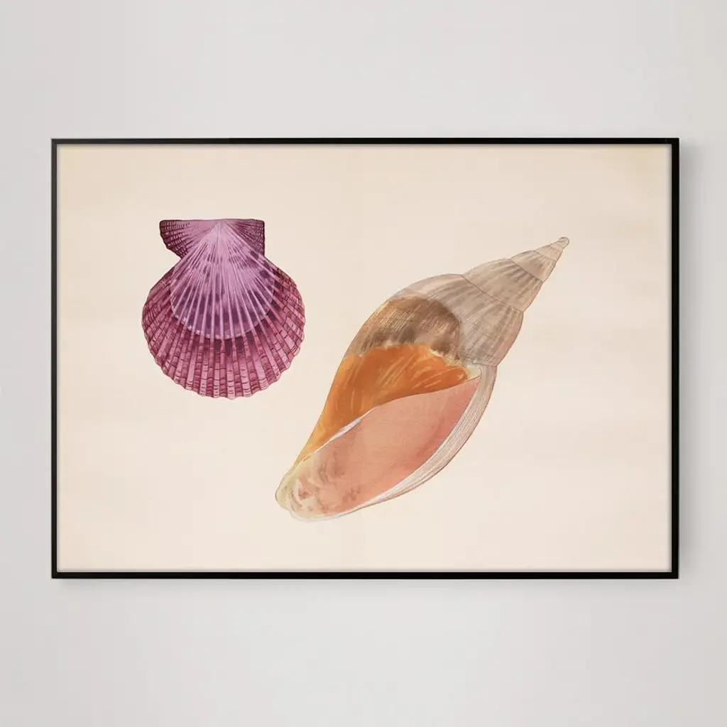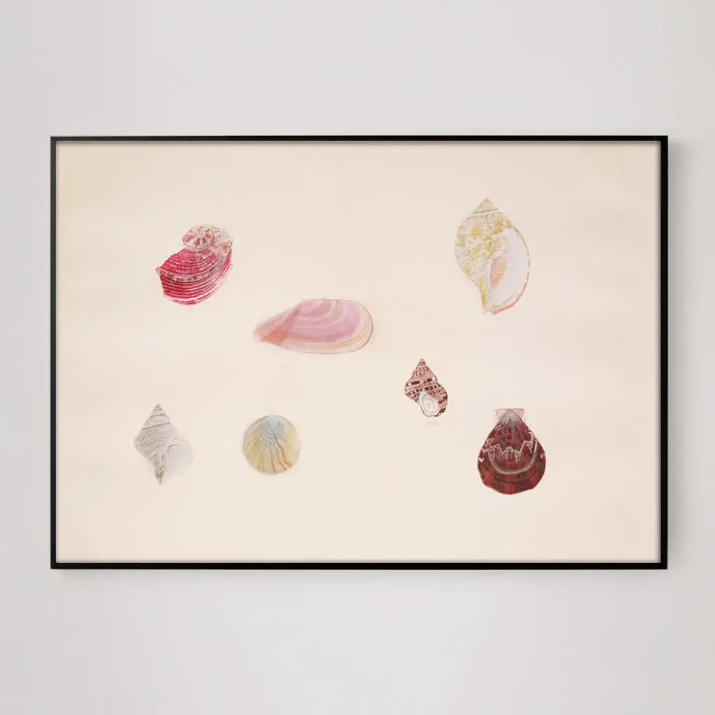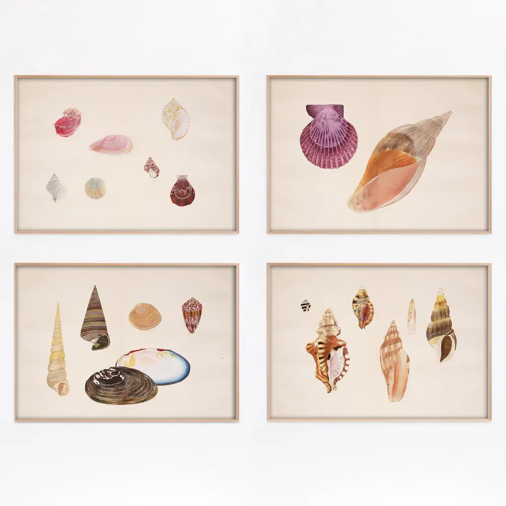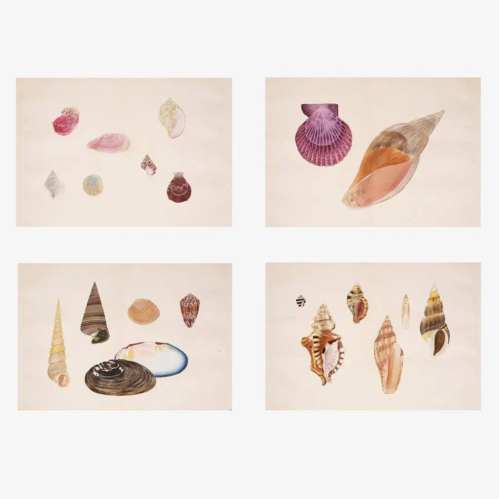 This gorgeous set of 4 prints was restored from a book of 19th Century Japanese Shell specimen illustrations. Beautifully warm neutrals with vibrant washes of bruise violets and salmon corals are delicately placed in an almost abstract formation. Set of 4 16" x 20" unframed prints on 100% cotton archival watercolor paper. Please note: We ship out within 3 days. Chairish transit times are not accurate.