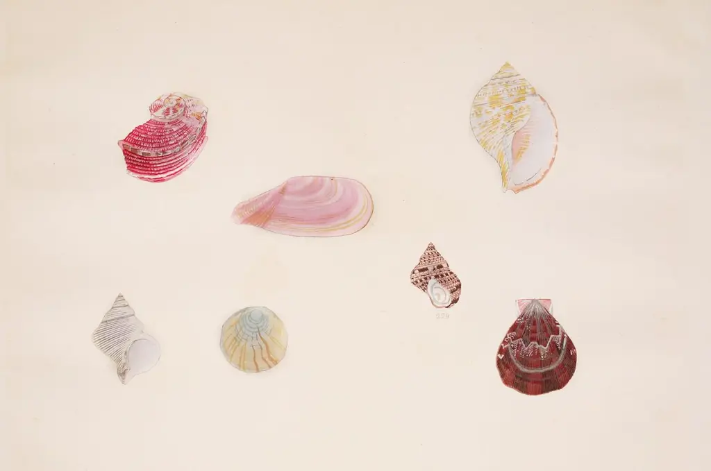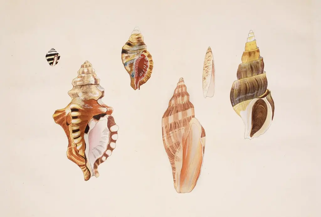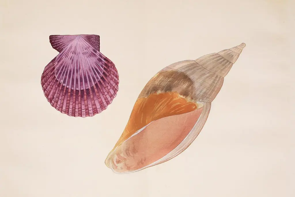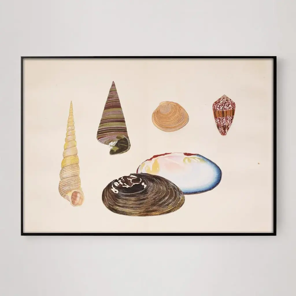 This gorgeous set of 4 prints was restored from a book of 19th Century Japanese Shell specimen illustrations. Beautifully warm neutrals with vibrant washes of bruise violets and salmon corals are delicately placed in an almost abstract formation. Set of 4 16" x 20" unframed prints on 100% cotton archival watercolor paper. Please note: We ship out within 3 days. Chairish transit times are not accurate.