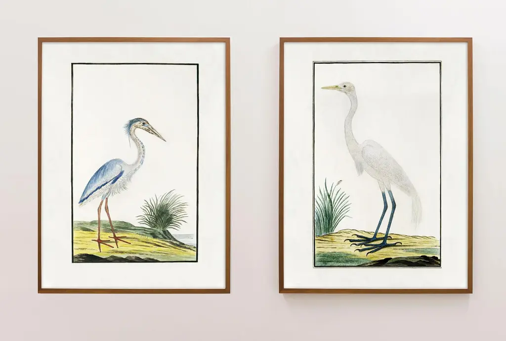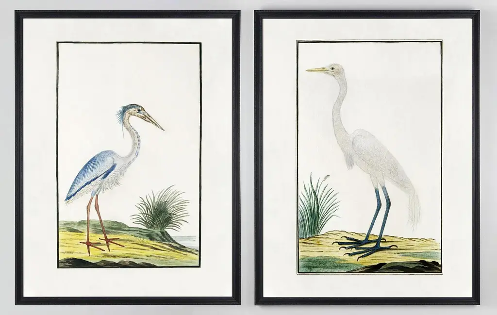 This set of prints portraying two Blue Cranes are restored from an antiquarian source circa 1780. Beautifully printed on 100% cotton archival watercolor paper. Set of 2 unframed prints. Each print is 18" x 24". Prints ship out in 1-3 days, Chairish estimated times are not correct.
