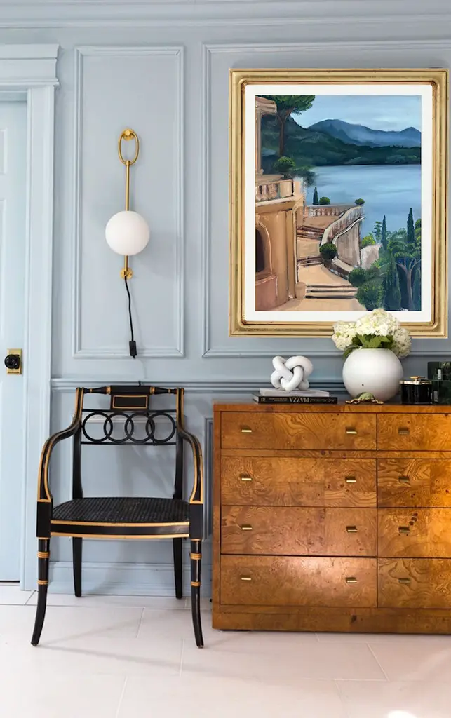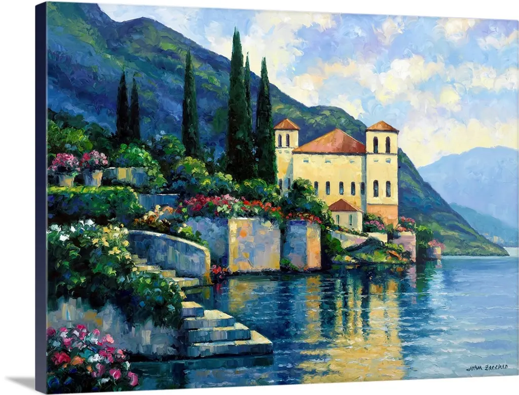 "Seascape" Original print of an italian oasis by the seaside. Oil painting illustrated and signed by New York based artist, JH Mintz. Artwork is 11"x14" not including a custom novelty gold frame and sheet glass protector.