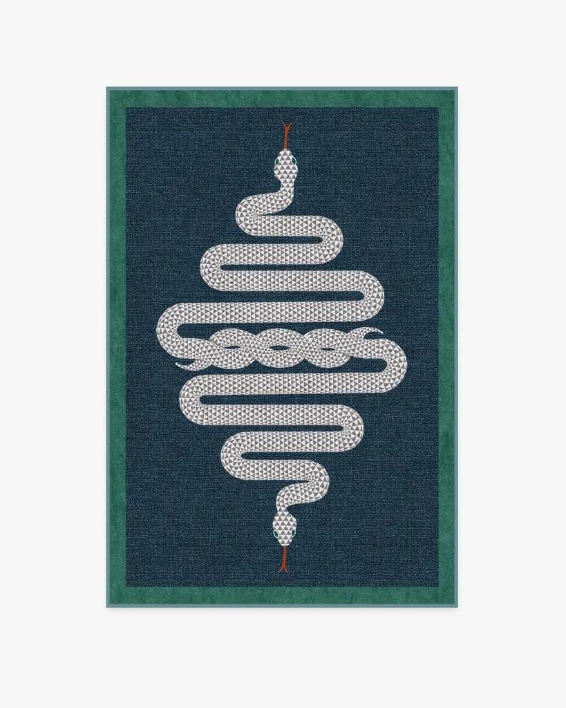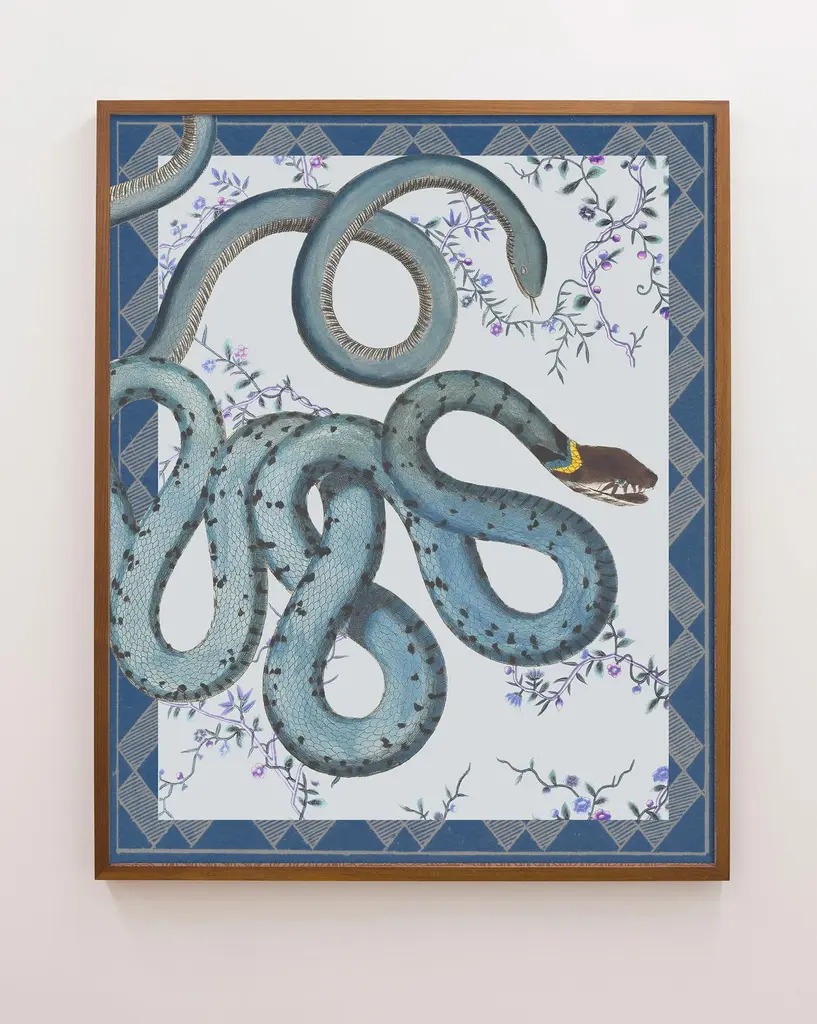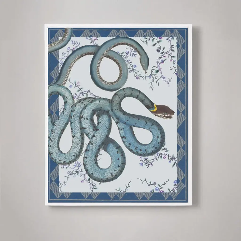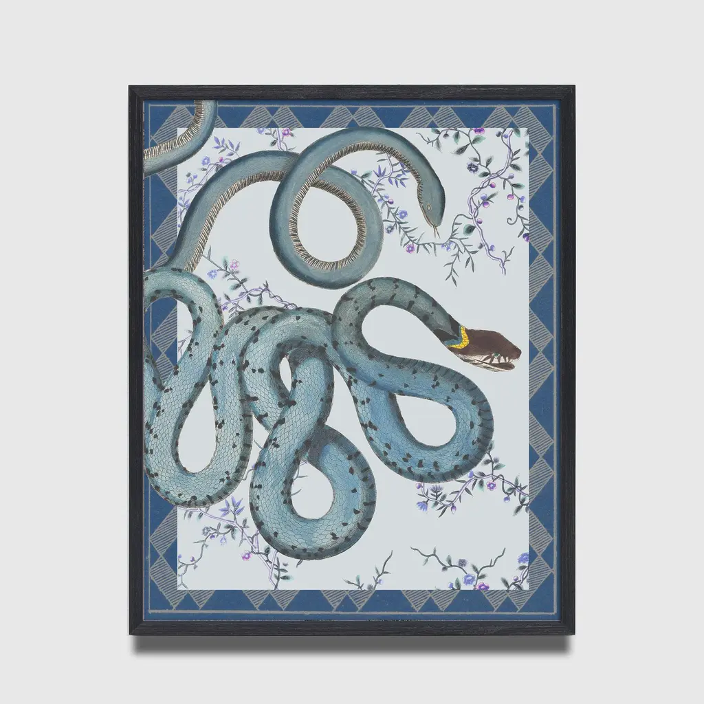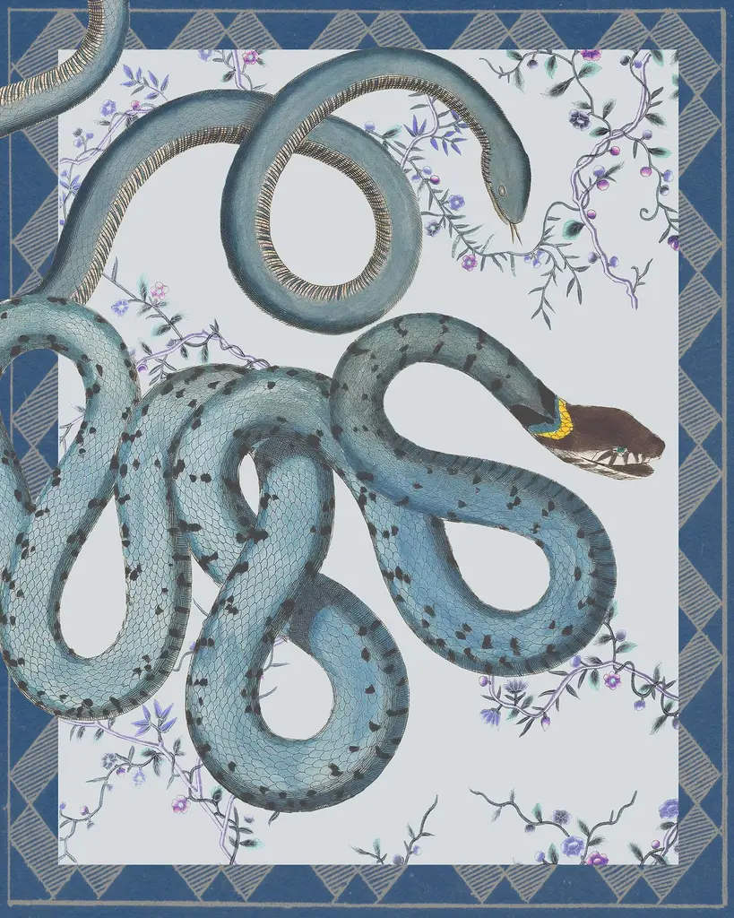 Reproduction "Les Serpentes" Snakes, Flowers, And Textile Pattern Blue Tone Print