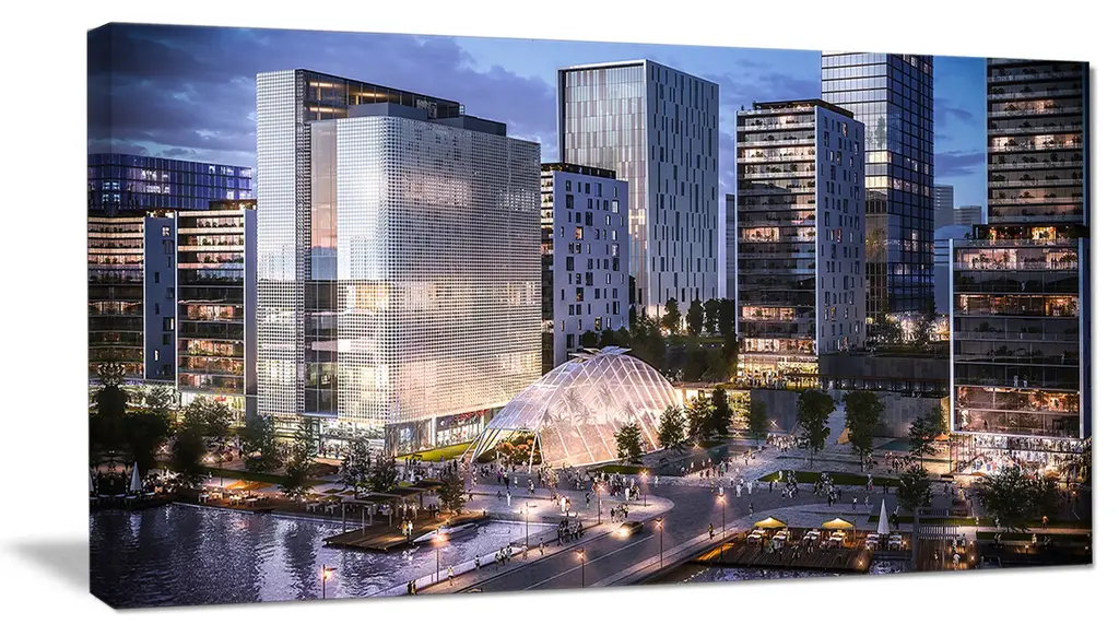 The Residential Complex Close-up canvas art print is sure to make an impression on anyone who sees it. This artwork is gallery wrapped around a 1-inch solid wood frame and arrives carefully packaged and entirely ready to hang on the wall. Design Art only uses the highest resolution and pigments to ensure a crisp colorful print that is never faded or pixelated. This artwork is sure to be a conversation starter in any home or office.