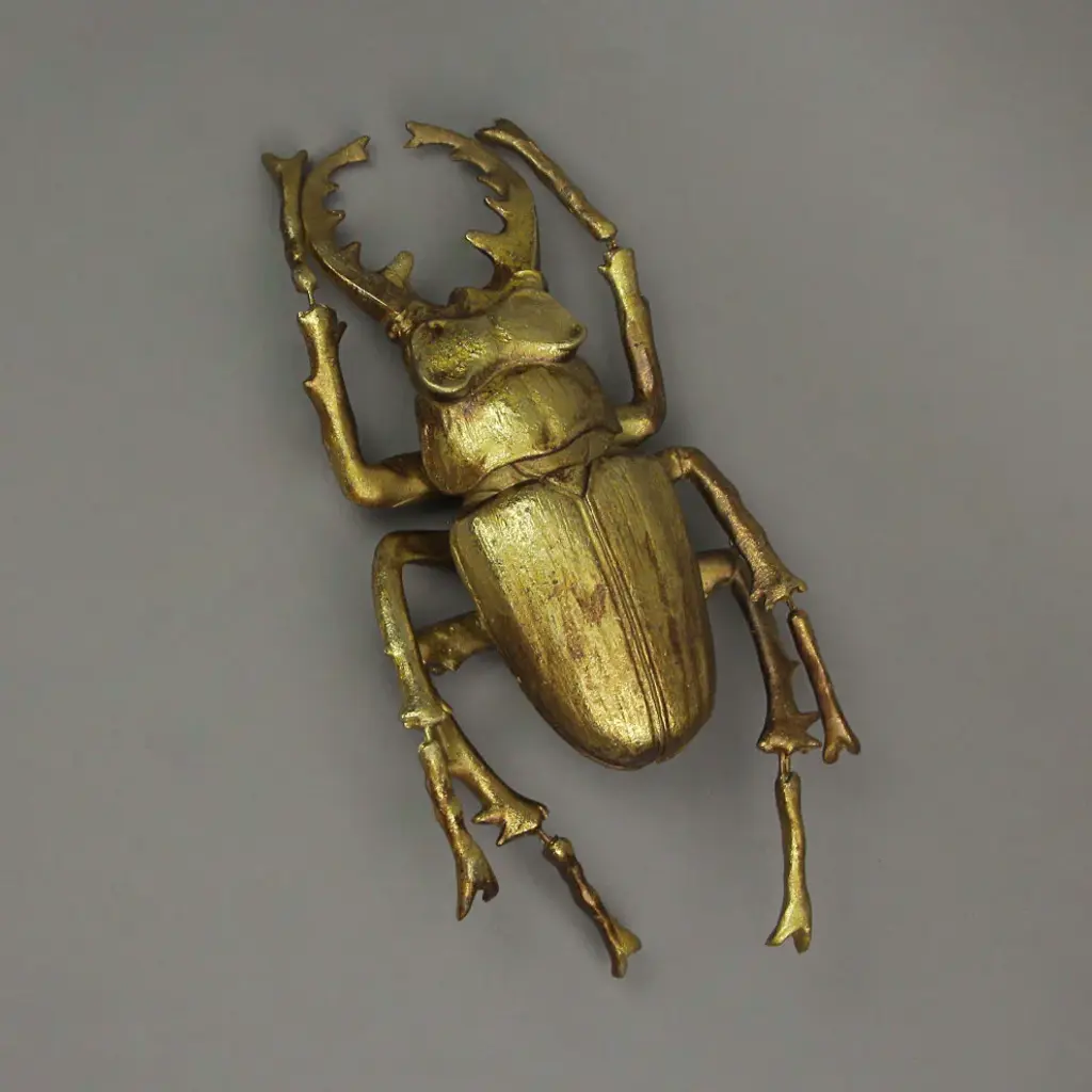 Resin Gold Stag Beetle Painted Sculpture Wall Art Home Decor Hanging Statue