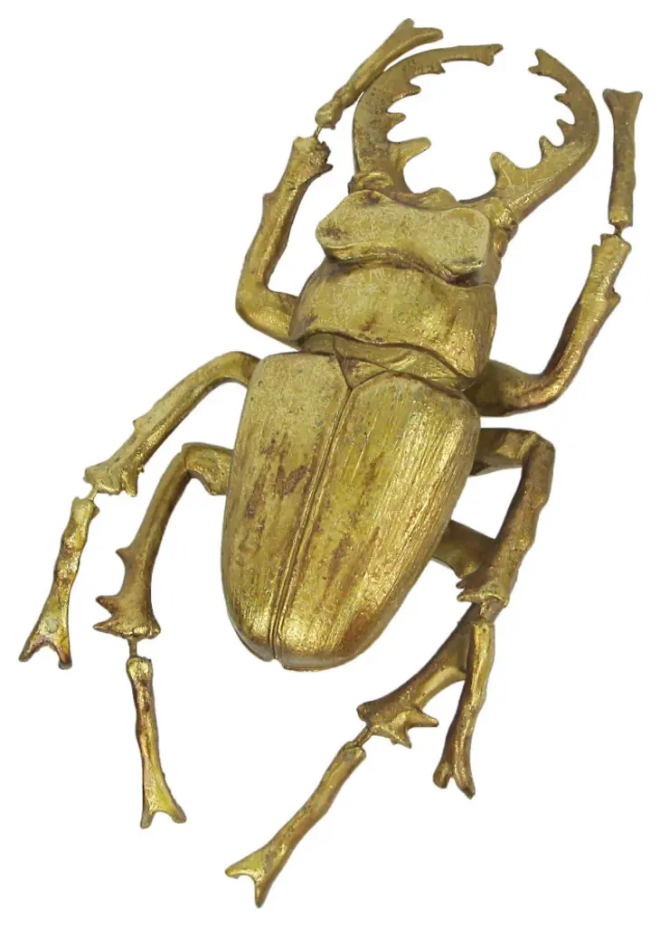 OVERALL SIZE - 6.75 Inch Wide, 2.5 Inch Depth, 13.75 Inch HighQUALITY CONSTRUCTION - Creatively Crafted in Cold Cast Polyresin With Intricately Sculpted DetailDAZZLING FINISH - Stunning Hand-Painted Gold Finish To Accent the Incredible DetailEASY SET-UP - Quick And Simple Mounting With Built-In Hanger On BackGREAT GIFT - For Yourself or For Friends and FamilyBring home a buzz of style with this decorative stag beetle wall hanging sculpture. Creatively crafted from resin for a highly detailed sculpture, the hand painted gold finish gives it a regal air that is fit for a pharaoh. Measuring 6.75 inch wide, 2.5 inch depth, 13.75 inch high; the built-in hanger on the back makes it quick and easy to mount on a wall in your bathroom, bedroom, living room, or kitchen. Makes for a great housewarming gift for yourself or friends and family.