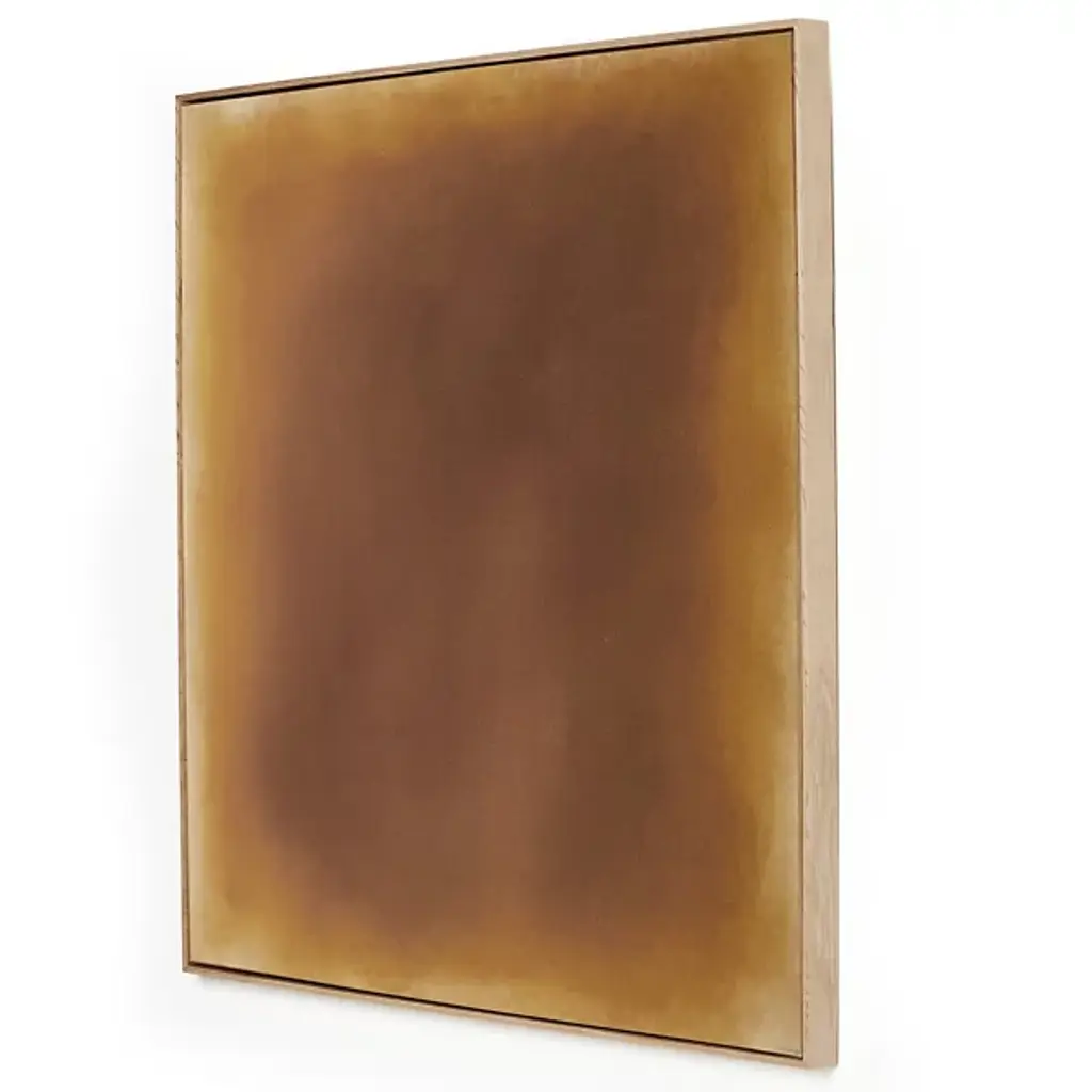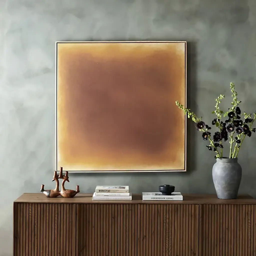 The Resonance Wall Art from Four Hands layers watercolors and inks in a fresh approach to color blocking. Created by FH Art Studio, this square format piece on raw canvas allows pigments to interact naturally. The vertical grain white oak floater frame provides clean lines that contrast with the artwork's fluid elements. This wall art is made in Austin, and its balanced format works especially well when centered on walls between windows or doorways.
