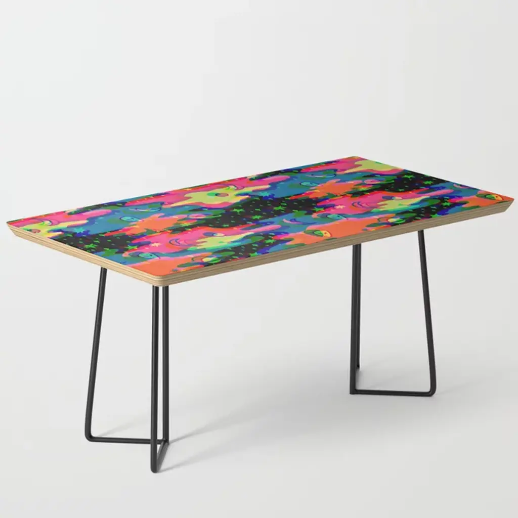 35.75" x 17.75" x 17" (H)Baltic birch table top with beveled edgeHigh quality print with satin finishSteel legs available in black or goldAssembly requiredEvery order is made just for youSHIPPING: Items are made to order and typically ship within 3-4 business days. Click here for more information about delivery options.Furniture sales are final. Click here for more information on returns.