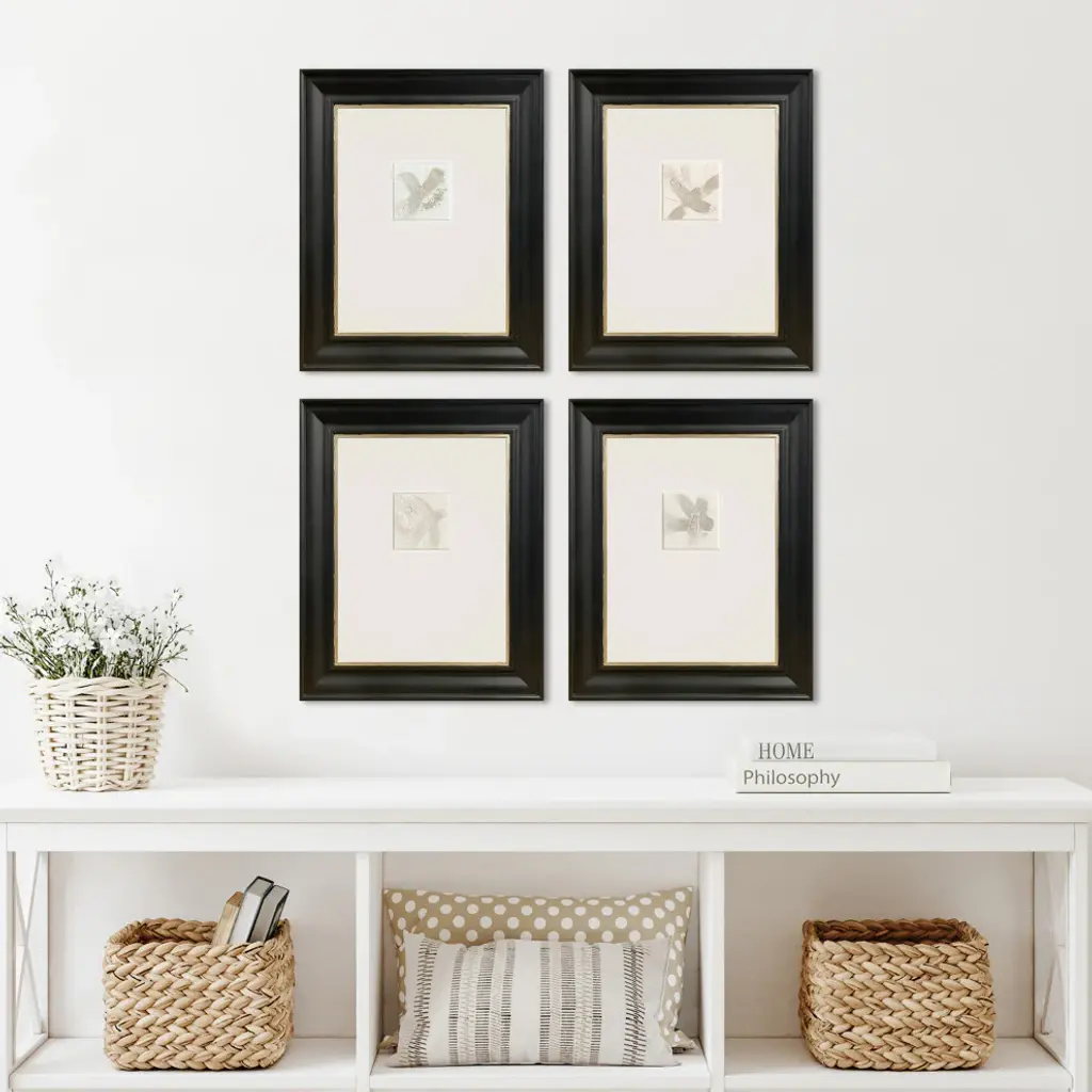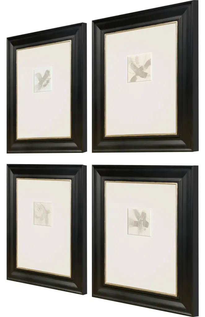 Exclusive hand painted on fine art paper with silver leaf accents. Framed in a hand painted black wood with aged silver leaf lip.