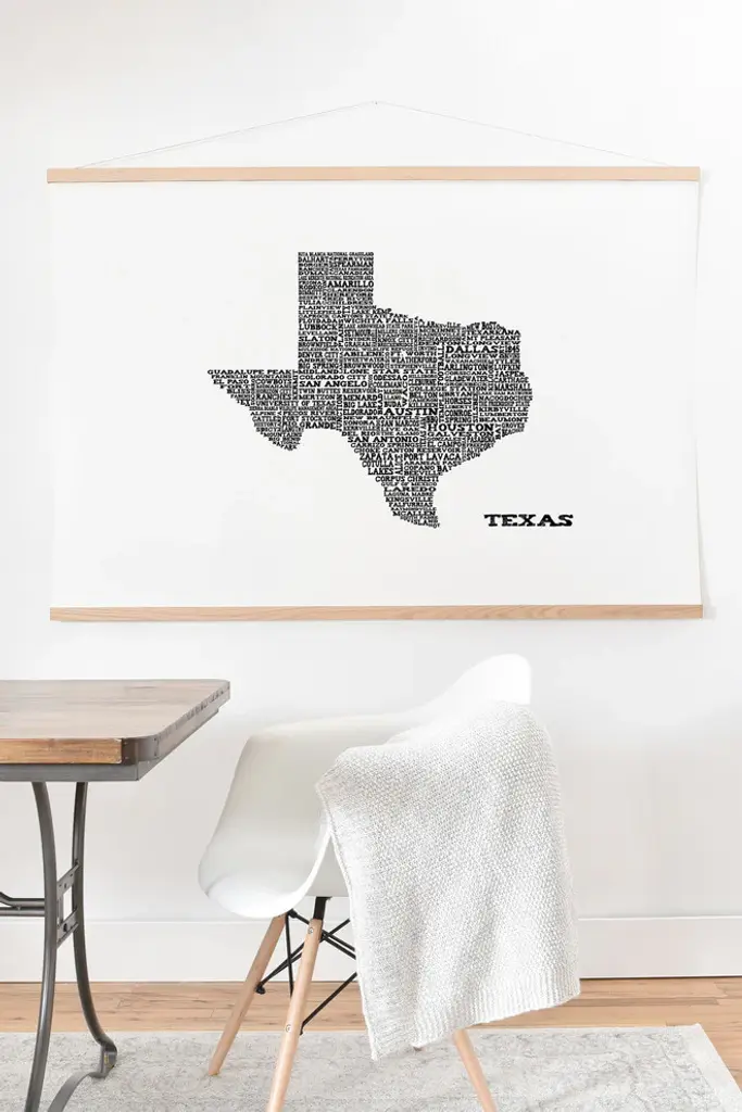 Restydui Designs Texas Map Art Print And Hanger, 30"x40"