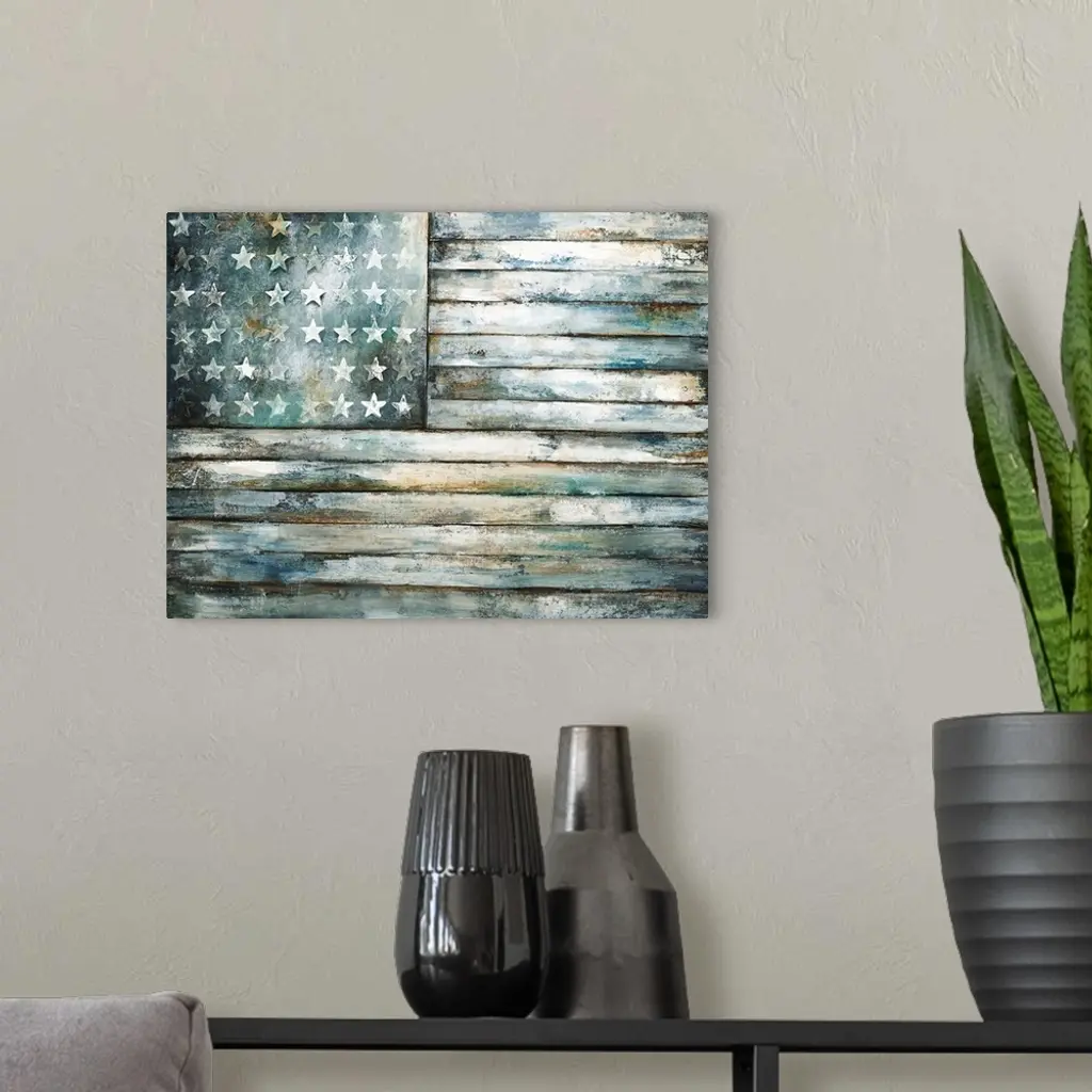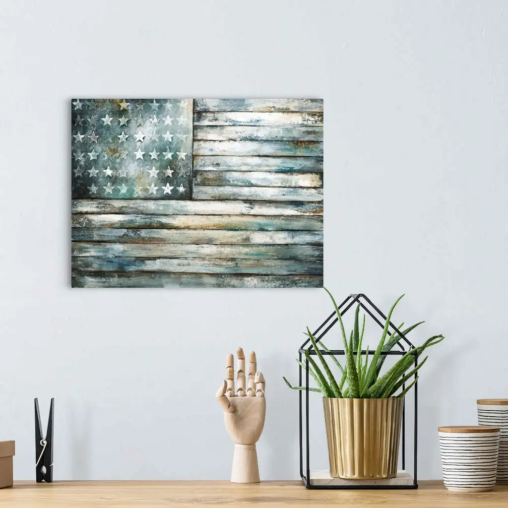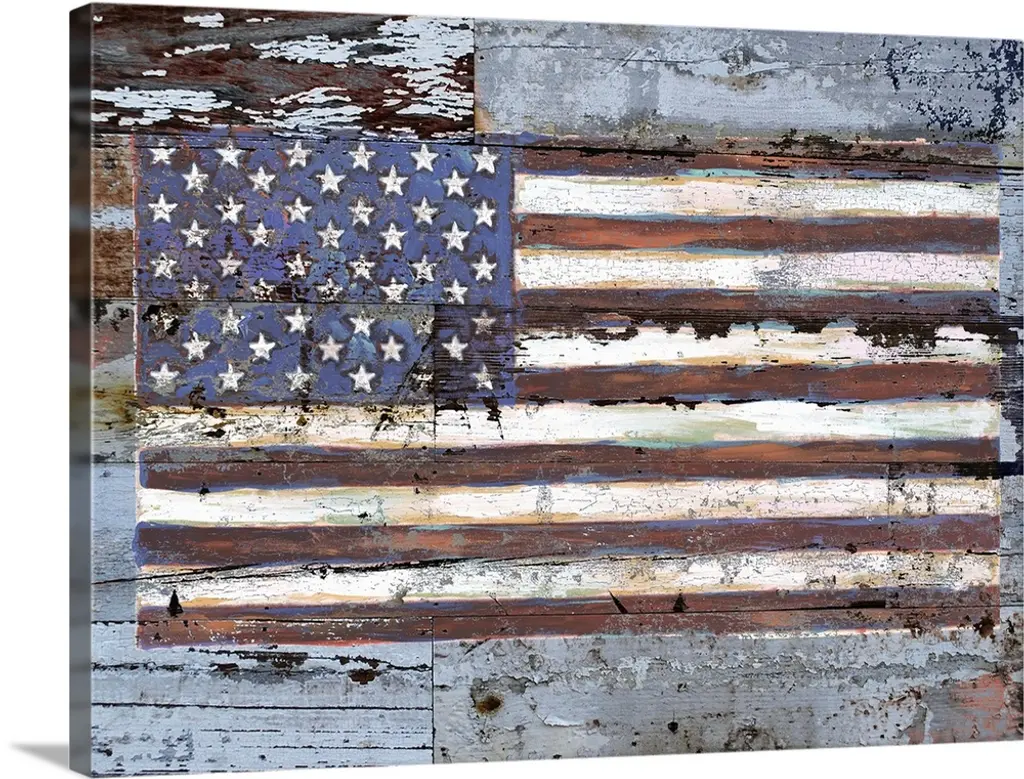 Contemporary painting of a wooden and weathered looking American flag.