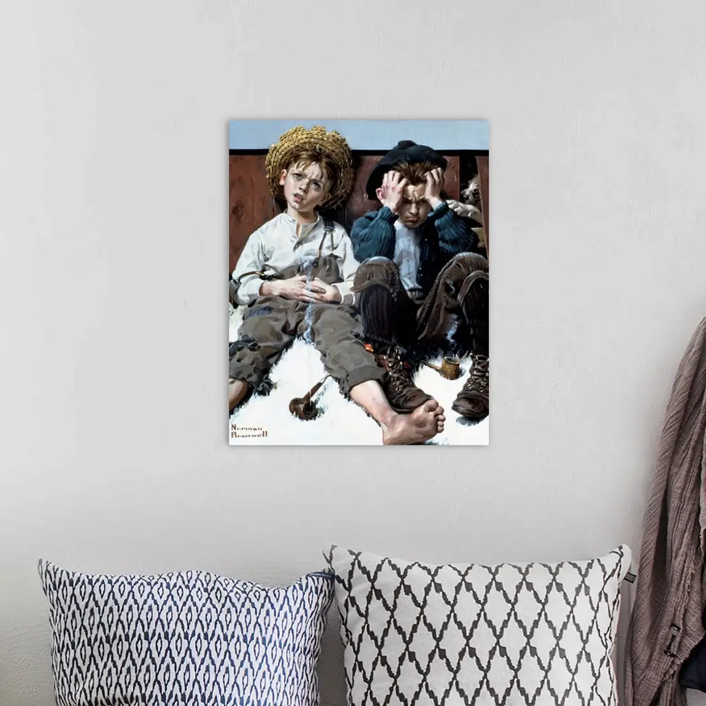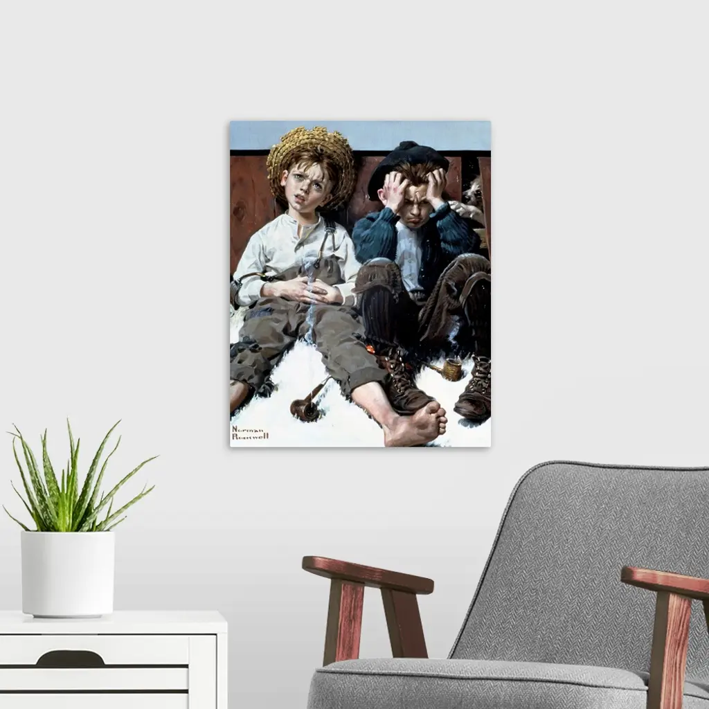 In Rockwell's world children disobeyed rules, adolescent girls grappled with social pressures, boys struggled with their evolution into manhood, and, in his most powerful paintings, society confronted issues of race. Many of his images of youth intended to evoke nostalgia, depict real family relationships, and memorialize the everyday. Approved by the Norman Rockwell Family Agency