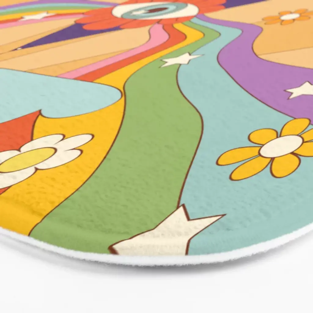 Retro Hippie Boho Rainbow Print Bath Mat