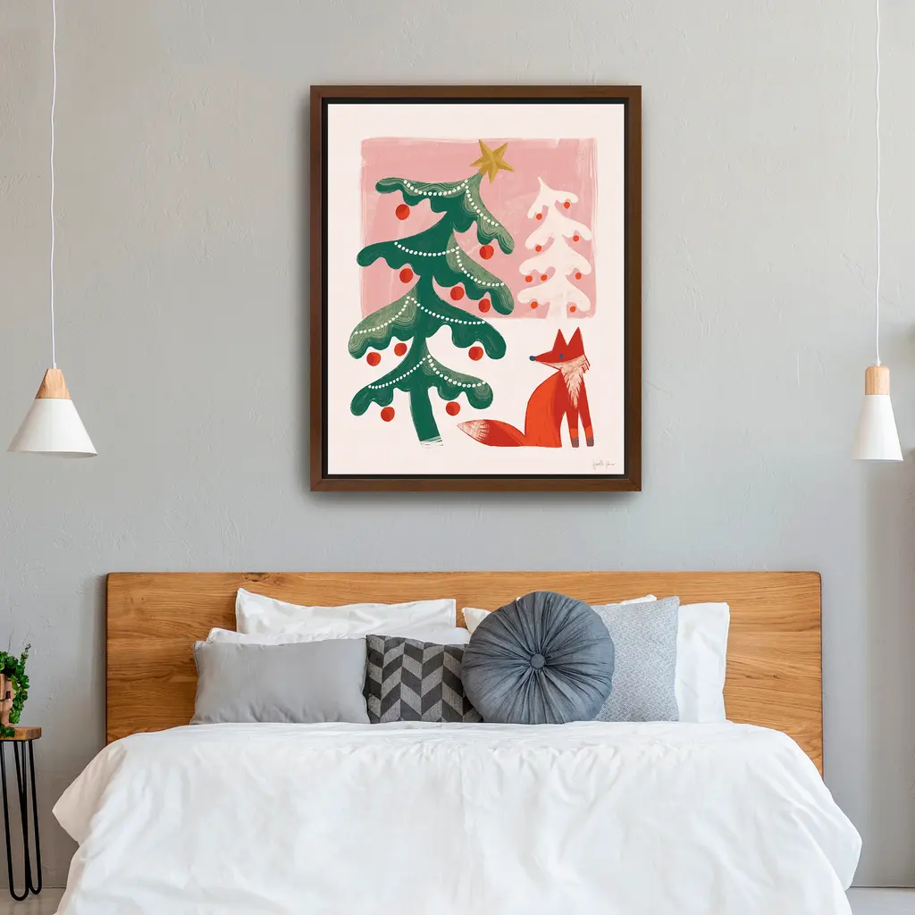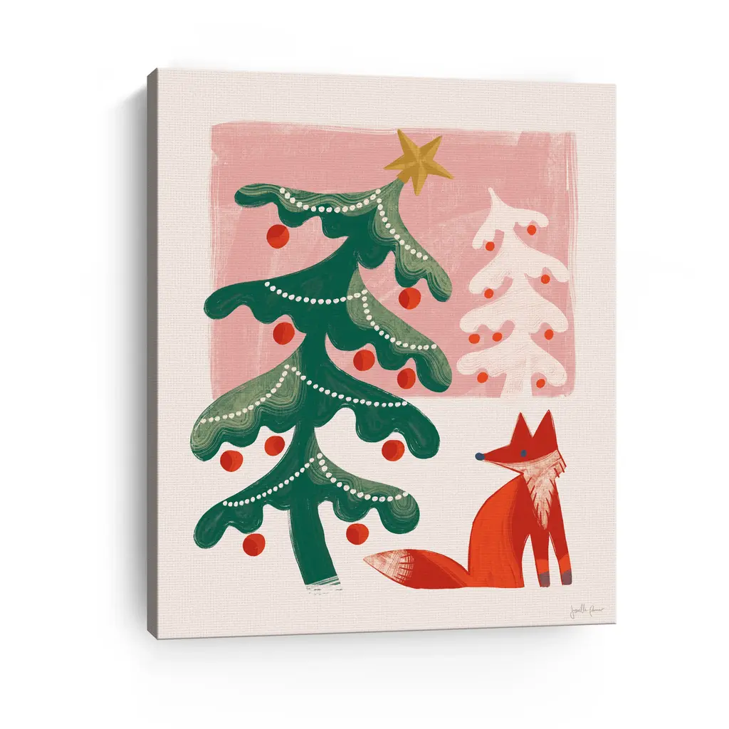 Add a touch of woodland wonder to your home with this winter-themed canvas showcasing stylized Christmas trees and a fox companion. Its cheerful palette and artistic details evoke warmth, joy, and seasonal serenity. Our Gallery Wrap Canvas Prints are proudly assembled with high quality materials in California, USA. Each piece is printed on a thick, archival grade canvas using Giclee technology. It is then hand-stretched by our experienced artisans over solid wood bars, which will not warp over time. The final product is a piece personally crafted for you to confidently display on your wall. Care and Assembly: Ensure that the location of your piece has little to no exposure to heat, sunlight, and moisture. Wipe clean, only if needed. Each piece includes hanging hardware to hang on your wall vertically.