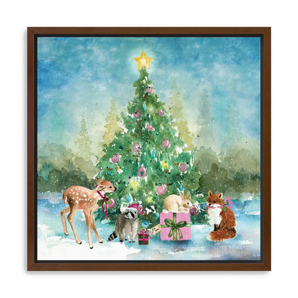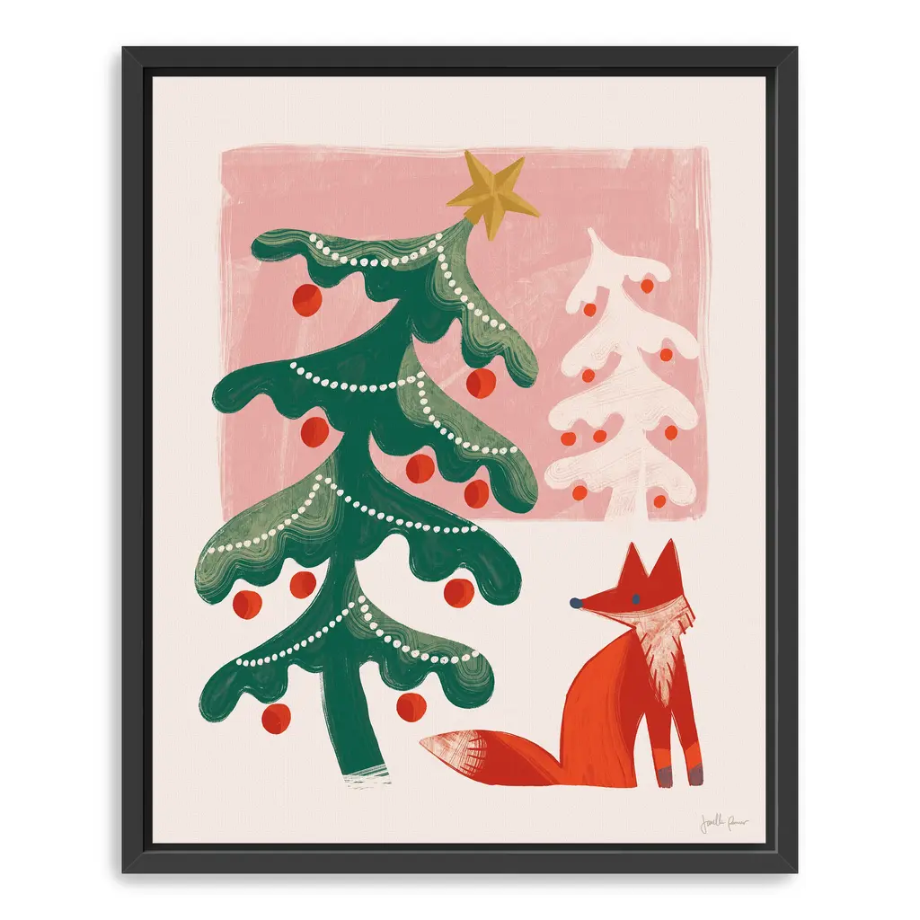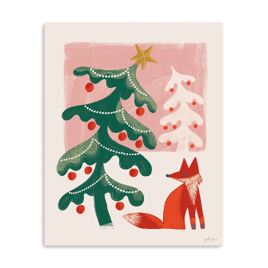 Add a touch of woodland wonder to your home with this winter-themed canvas showcasing stylized Christmas trees and a fox companion. Its cheerful palette and artistic details evoke warmth, joy, and seasonal serenity. Our Gallery Wrap Canvas Prints are proudly assembled with high quality materials in California, USA. Each piece is printed on a thick, archival grade canvas using Giclee technology. It is then hand-stretched by our experienced artisans over solid wood bars, which will not warp over time. The final product is a piece personally crafted for you to confidently display on your wall. Care and Assembly: Ensure that the location of your piece has little to no exposure to heat, sunlight, and moisture. Wipe clean, only if needed. Each piece includes hanging hardware to hang on your wall vertically.