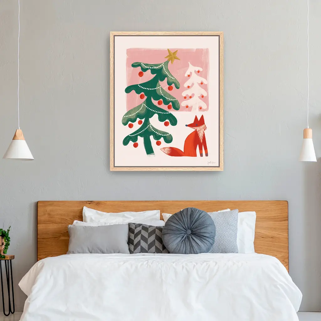 Add a touch of woodland wonder to your home with this winter-themed canvas showcasing stylized Christmas trees and a fox companion. Its cheerful palette and artistic details evoke warmth, joy, and seasonal serenity. Our Gallery Wrap Canvas Prints are proudly assembled with high quality materials in California, USA. Each piece is printed on a thick, archival grade canvas using Giclee technology. It is then hand-stretched by our experienced artisans over solid wood bars, which will not warp over time. The final product is a piece personally crafted for you to confidently display on your wall. Care and Assembly: Ensure that the location of your piece has little to no exposure to heat, sunlight, and moisture. Wipe clean, only if needed. Each piece includes hanging hardware to hang on your wall vertically.