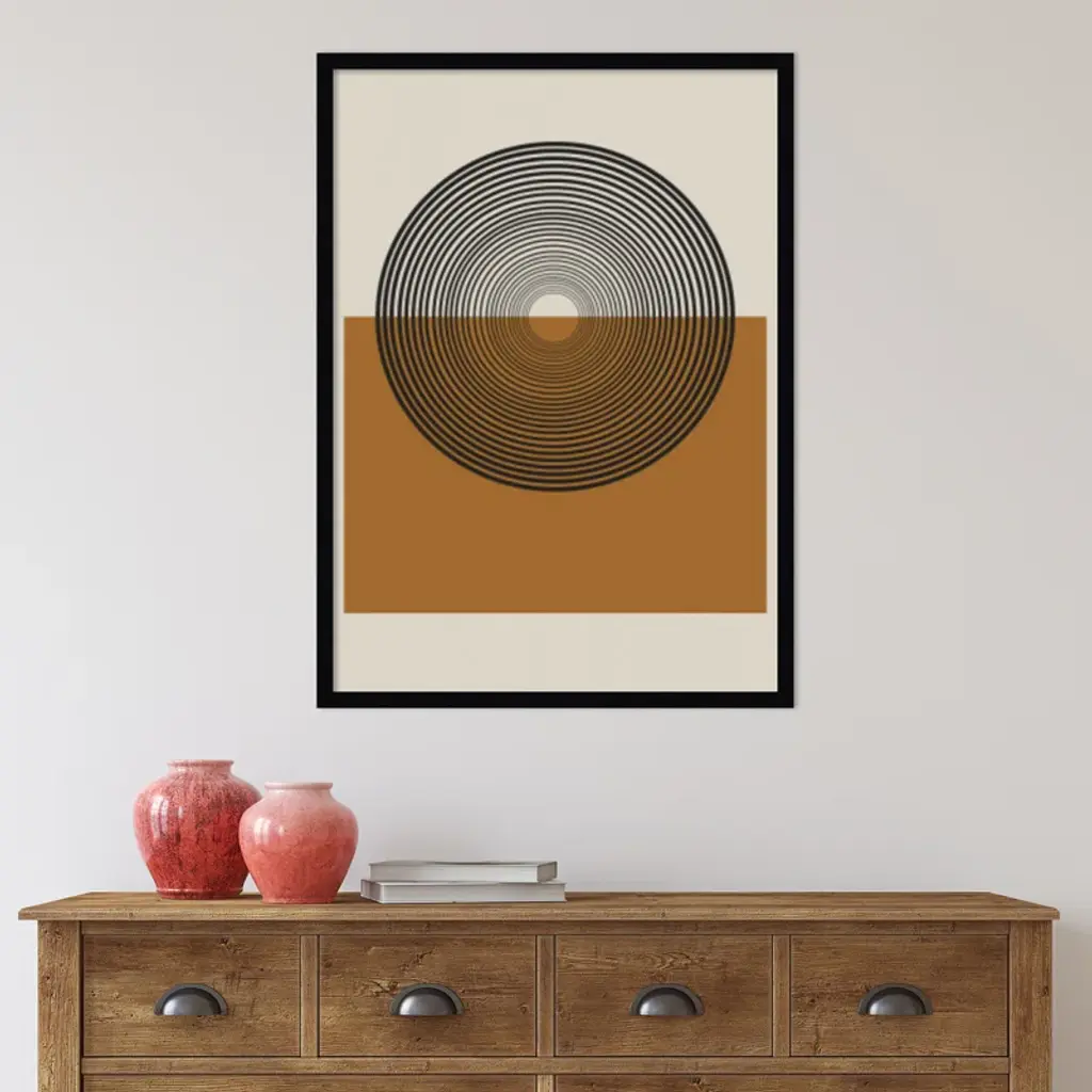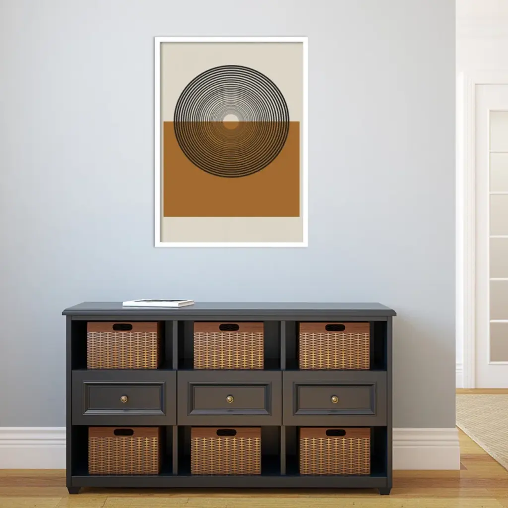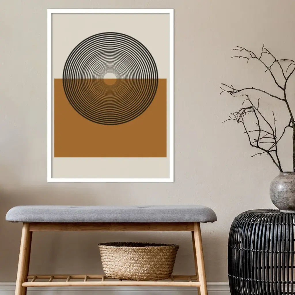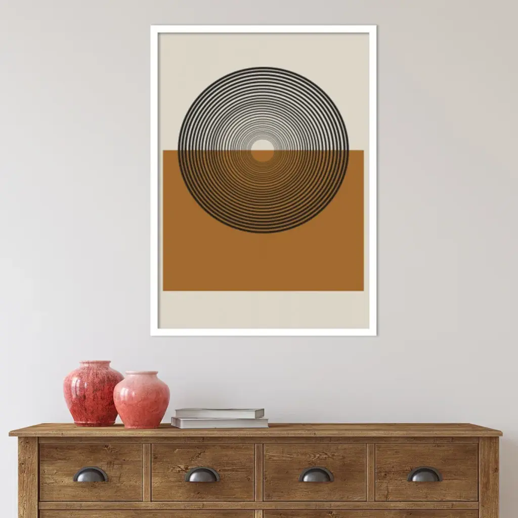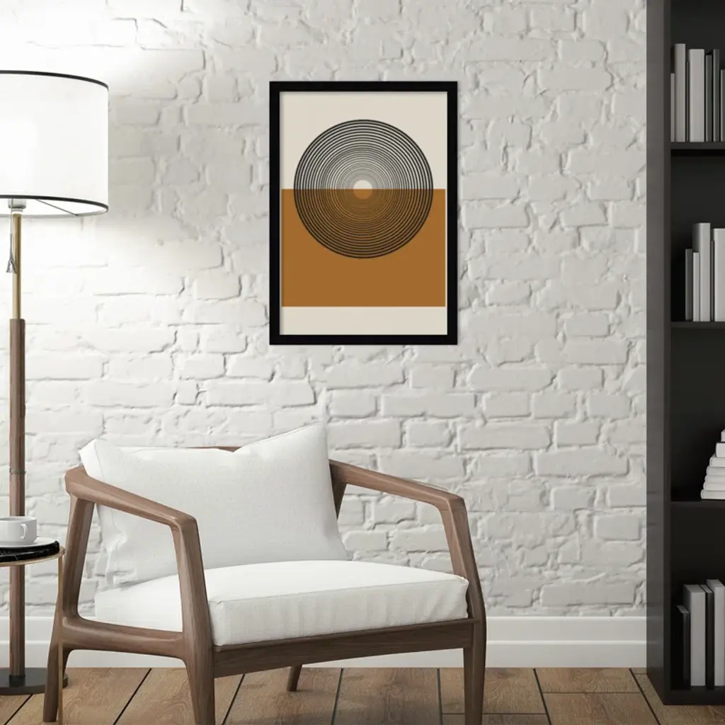 This muted abstract artwork is giclee-printed using fade-resistant inks on premium paper, and arrives in a wooden frame with a plexiglass cover that helps protect it from fading + warping. Included wall mounting hardware allows you to hang this print right out of the box.