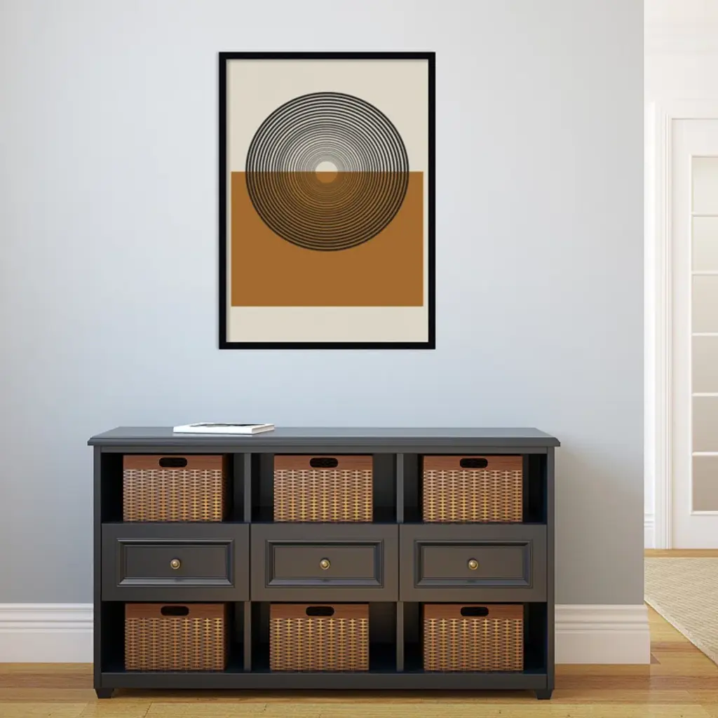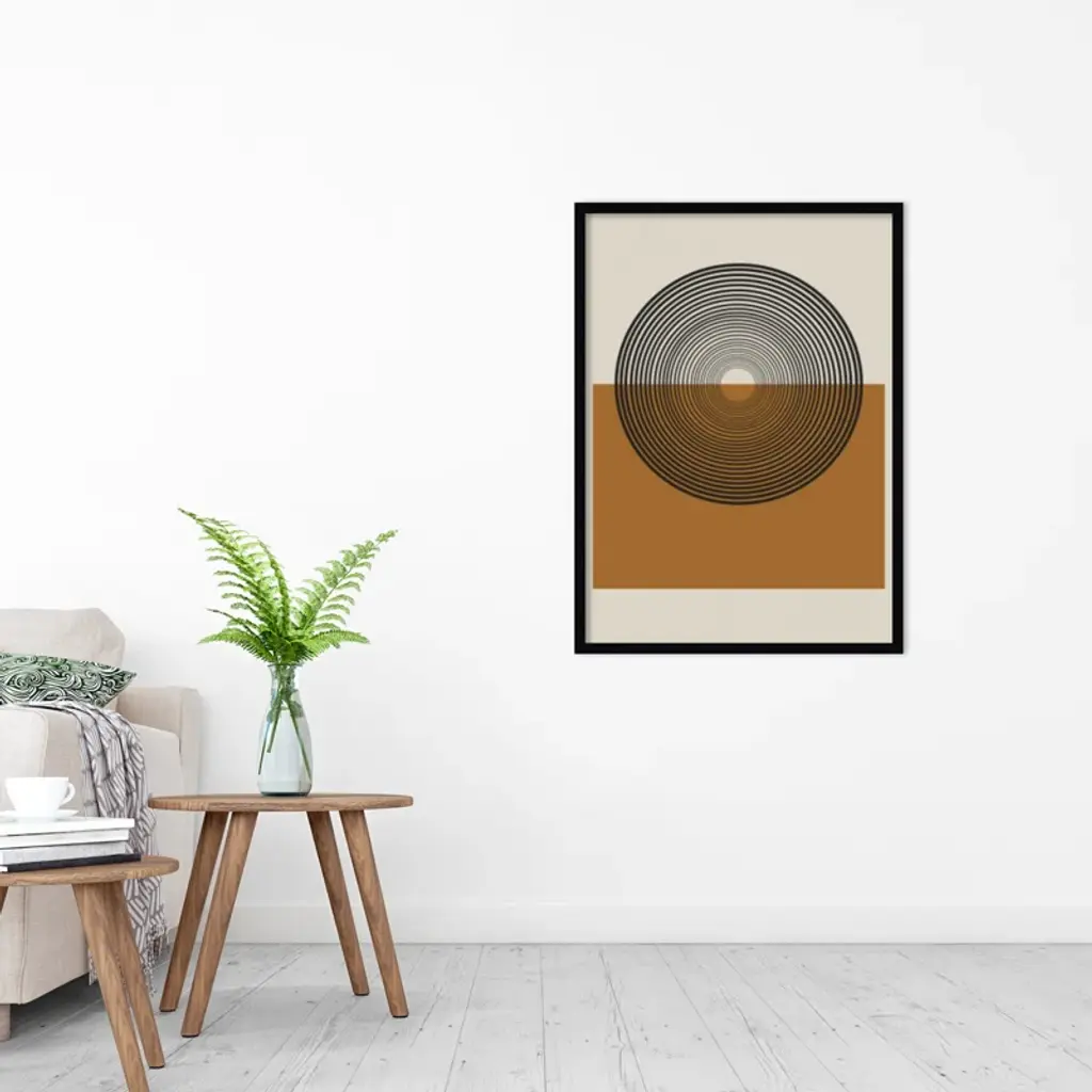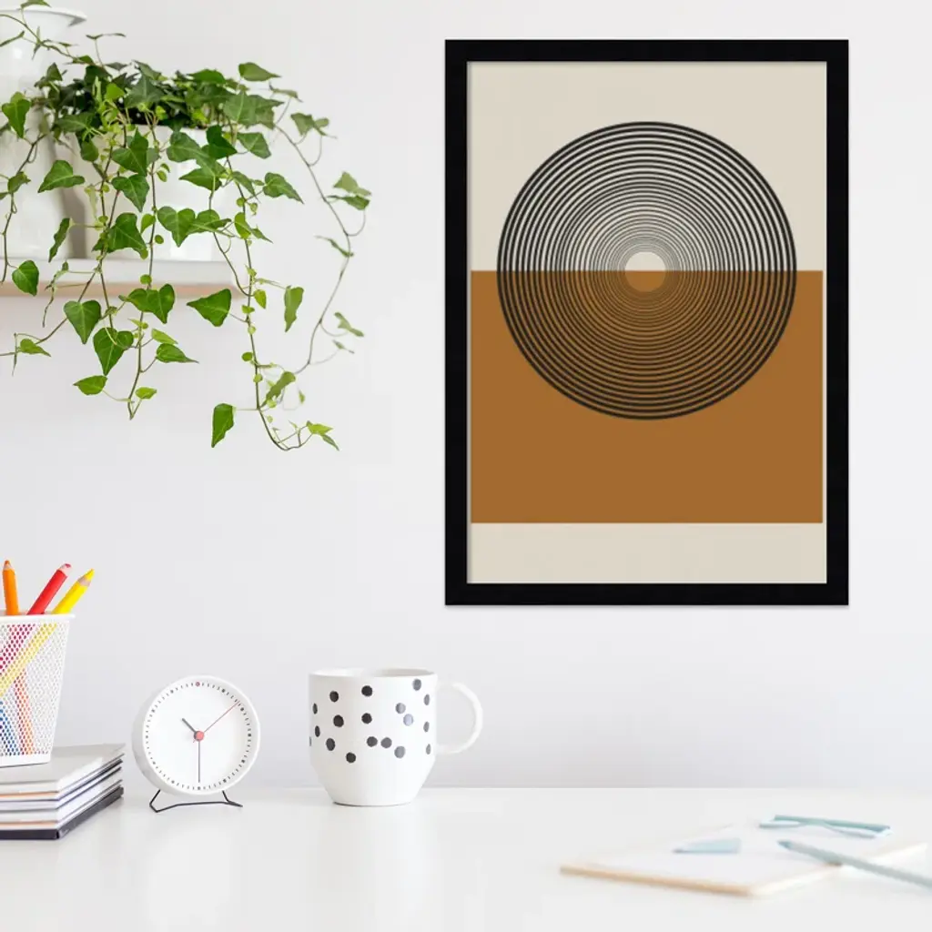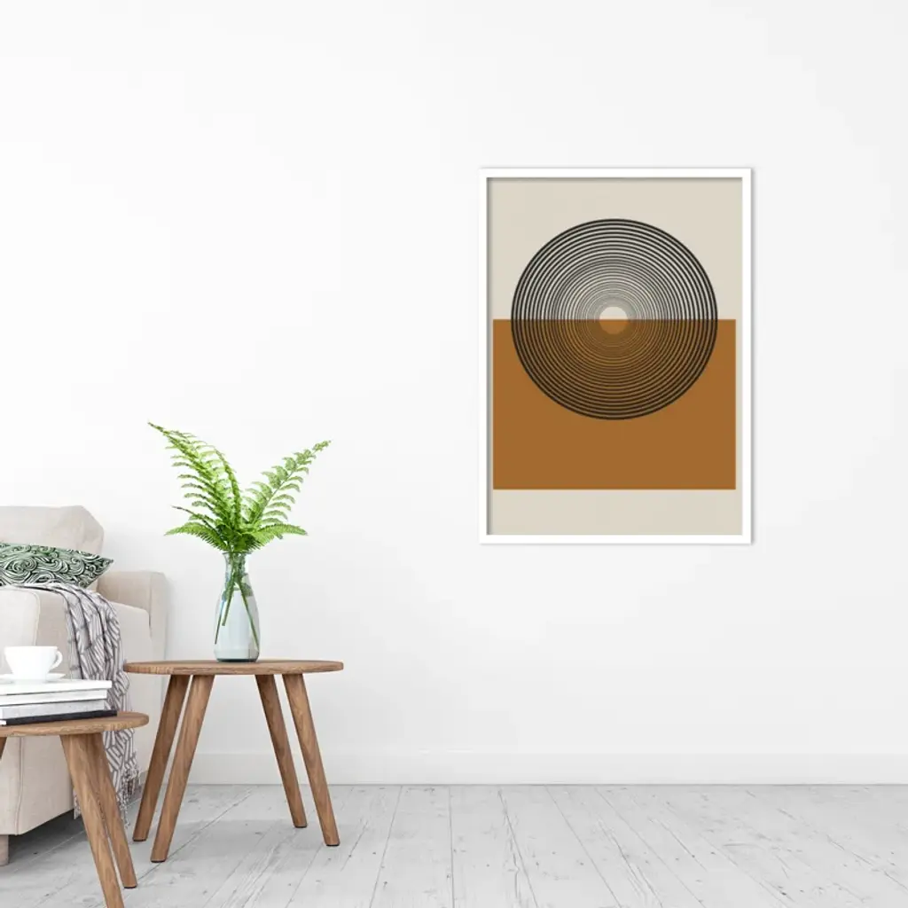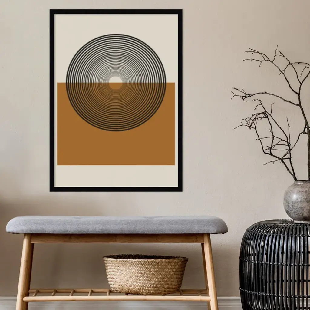 This muted abstract artwork is giclee-printed using fade-resistant inks on premium paper, and arrives in a wooden frame with a plexiglass cover that helps protect it from fading + warping. Included wall mounting hardware allows you to hang this print right out of the box.