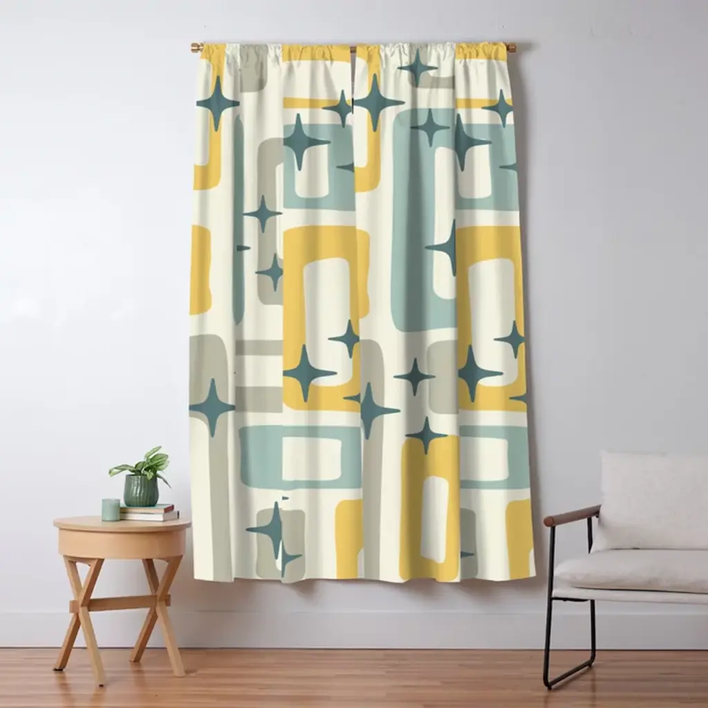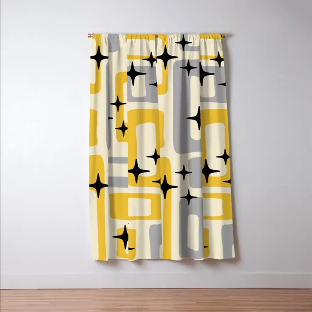 Retro Mid Century Modern Abstract Pattern 226 Yellow And Gray Curtain