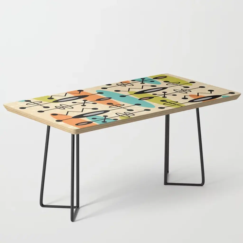 Retro Mid Century Modern Abstract Pattern 921 Googie Orange Chartreuse Turquoise Coffee Table