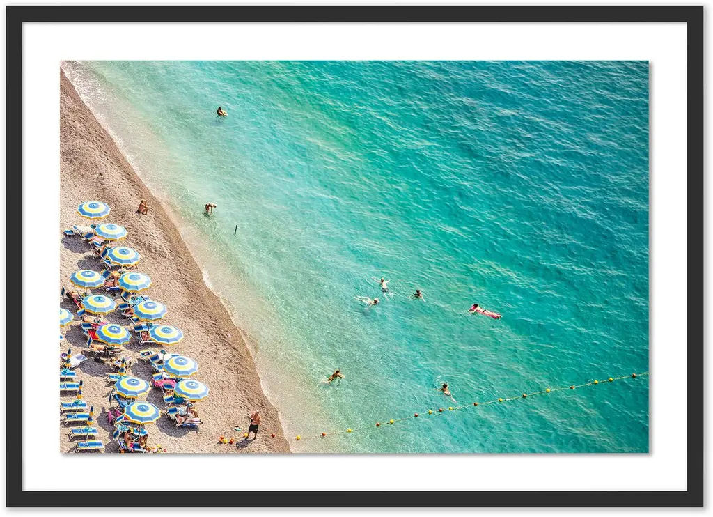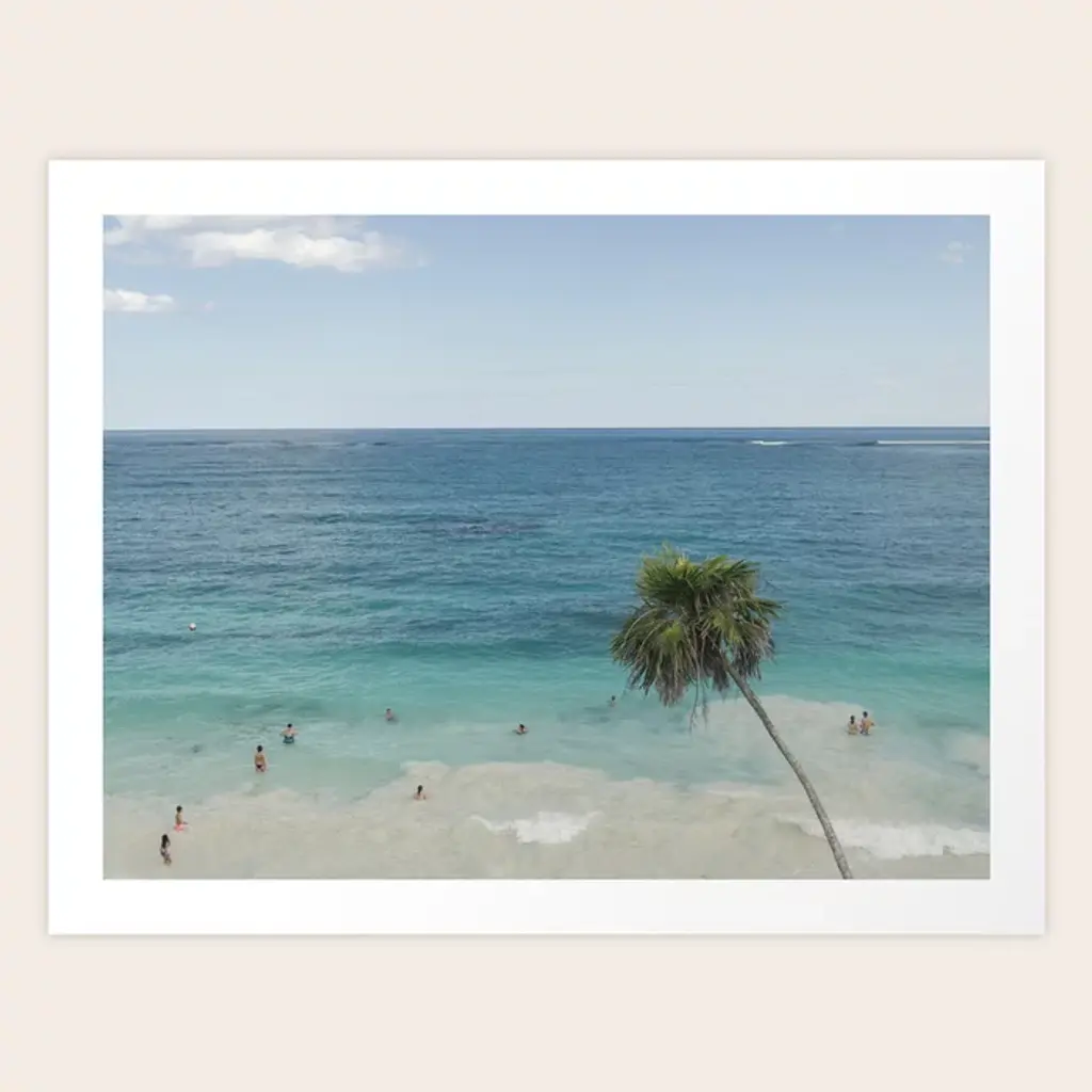 Retro Palm Beach Scene - Turquoise Ocean Wall Art Photography Art Print