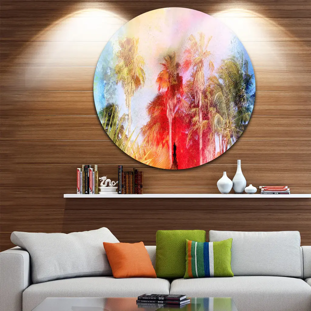 Retro Palms Watercolor, Trees Painting Large Disc Metal Wall Art, 11"