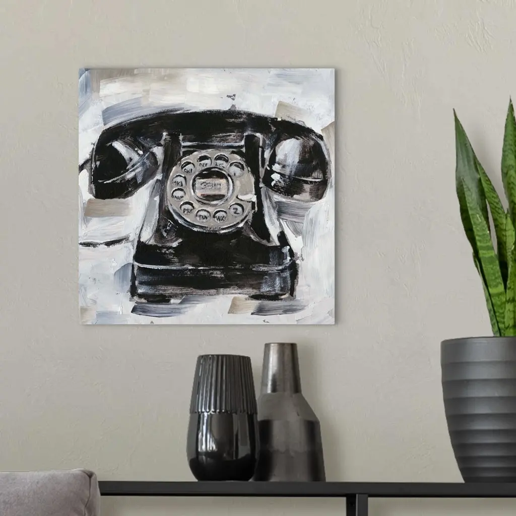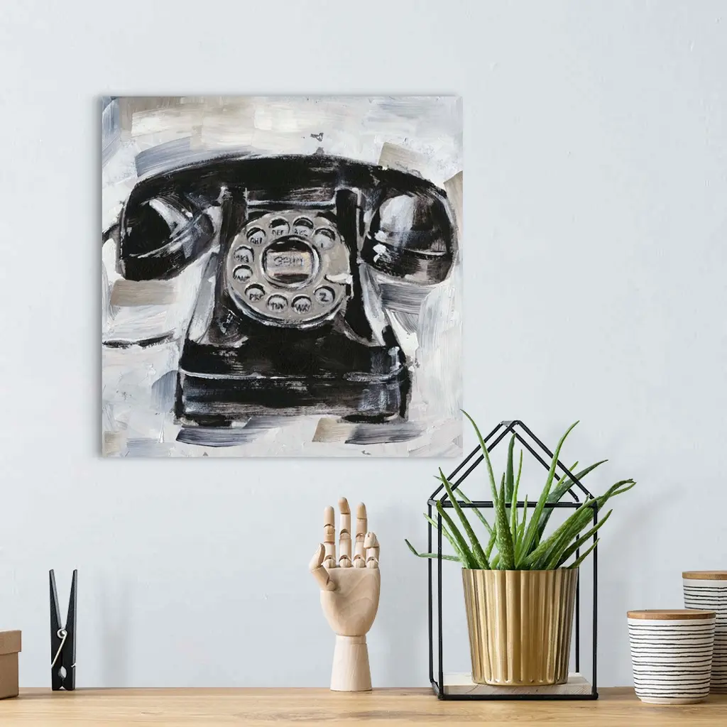 Fun contemporary painting of a retro rotary phone on a neutral background.