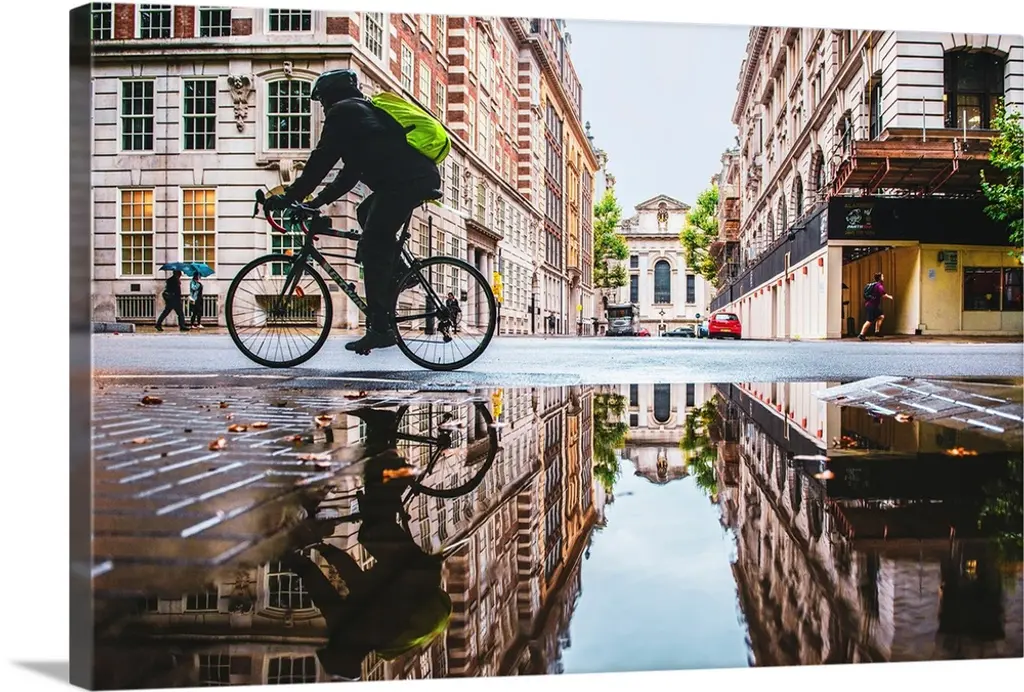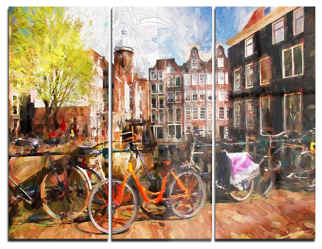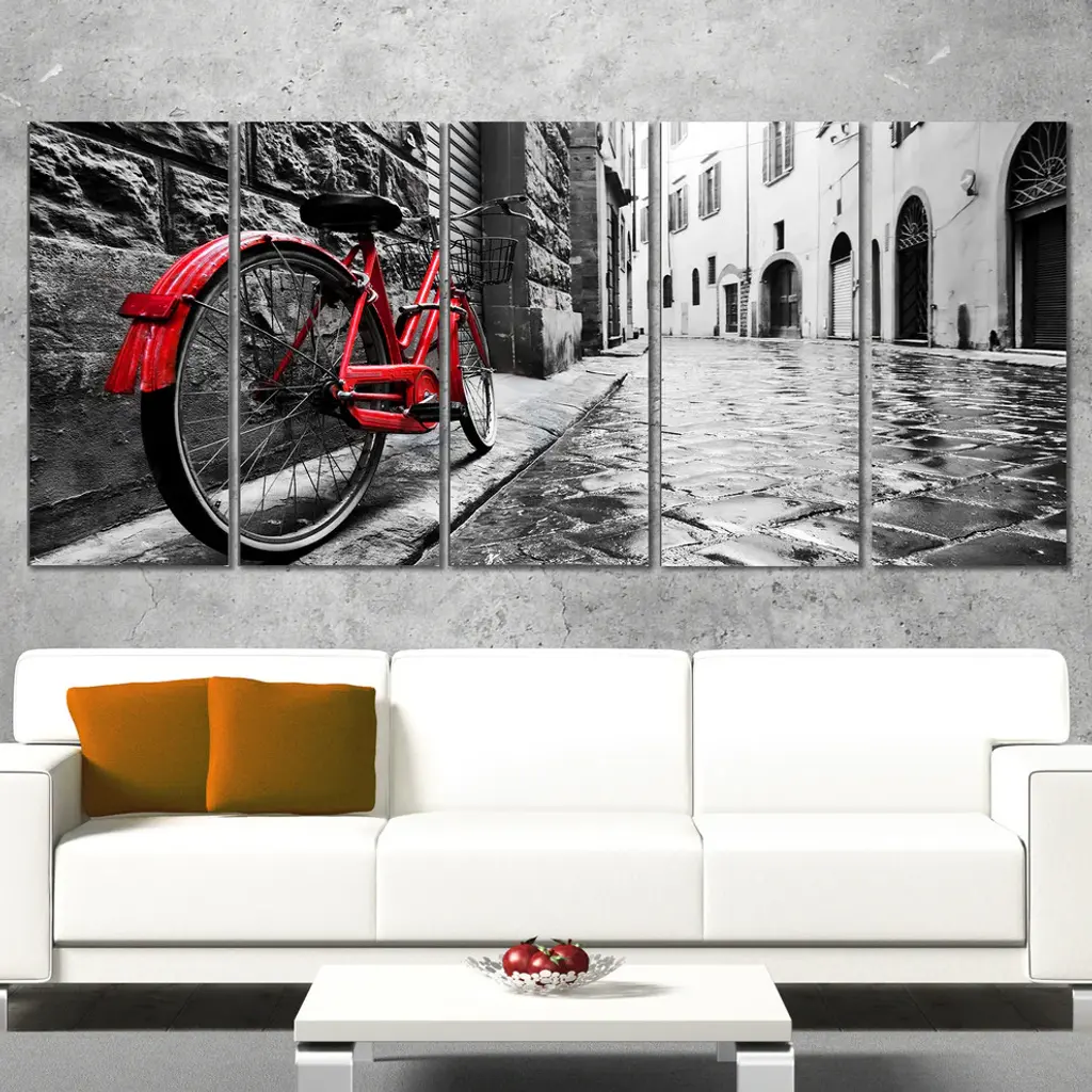 "Retro Vintage Red Bike" Cityscape Canvas Photo Print, 5 Panels, 60"x28"