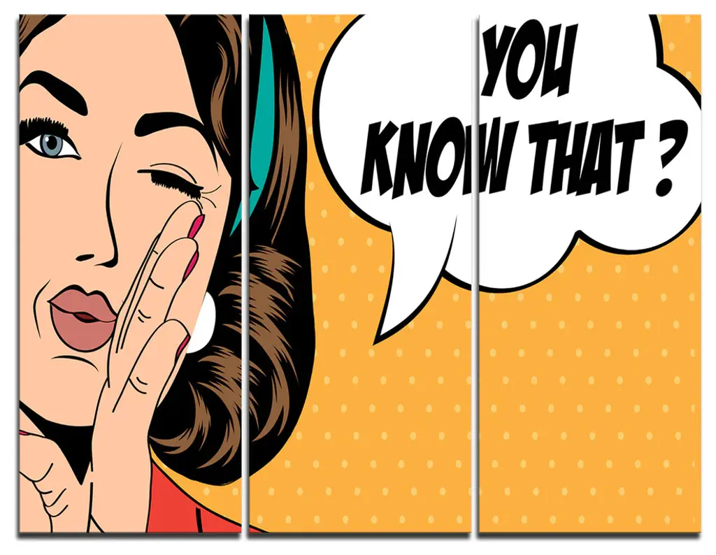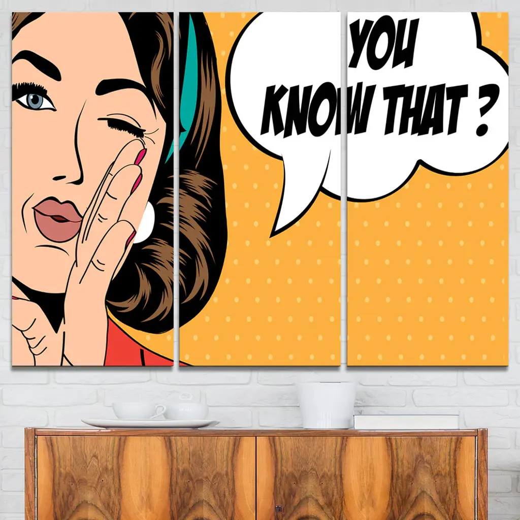 "Retro Woman In Comic Style" Digital Metal Wall Art, 3 Panels, 36"x28"