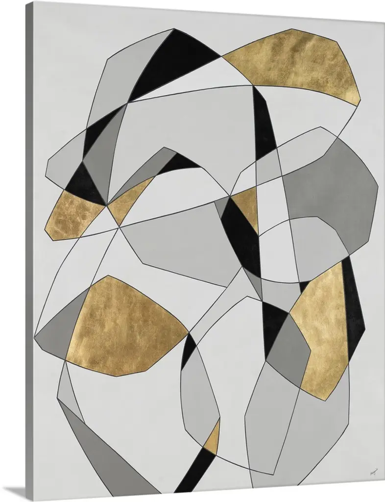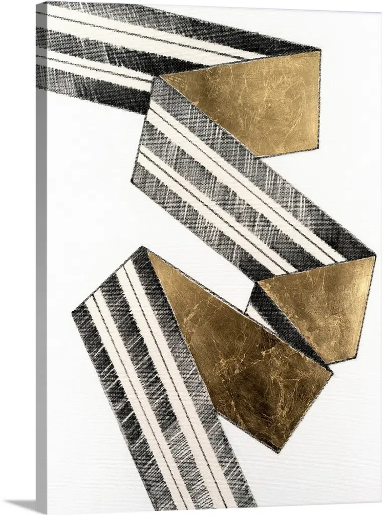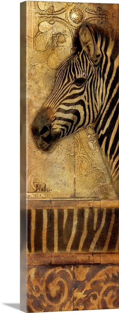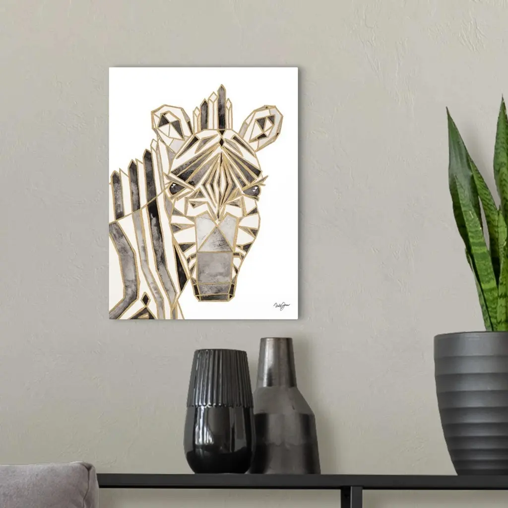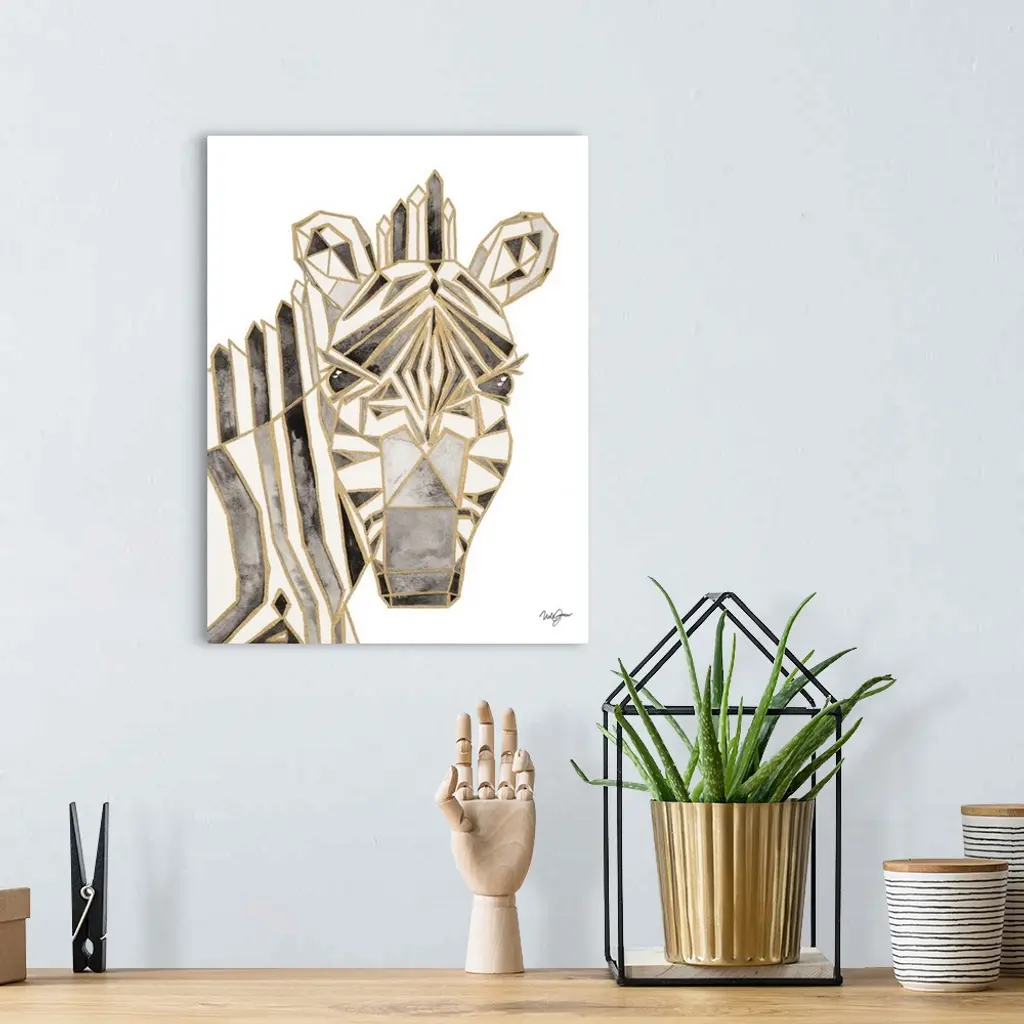 Watercolor painting of a zebra created with metallic gold geometric shapes.