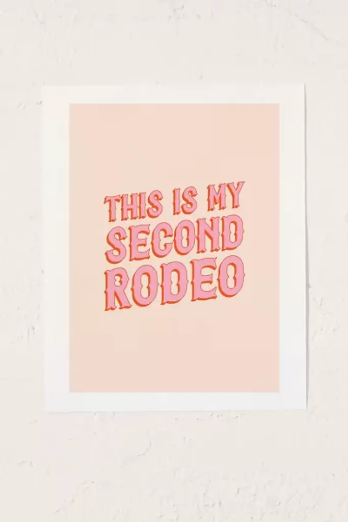 Art print by retrografika featuring This Is My Second Rodeo text. Printed on archival paper made from cotton pressed in Italian mills, this high-quality art print is available in sizes and frames just right for your space. First select your frame (or go frameless), then select your size. **About the Frames** \- The exact width of each frame may vary slightly \- All frames are manufactured in the US \- Matte frames are durable poly \- Wood frames are recycled wood \- All are fitted with protective plexiglass \- Finished with wood moldings, archival backer and protective bumpers **Size** \- Available in multiple sizes \- Use the Size Guides to find the size that fits your space **Content + Care** \- Wipe clean \- Made in the USA