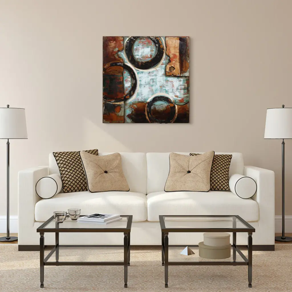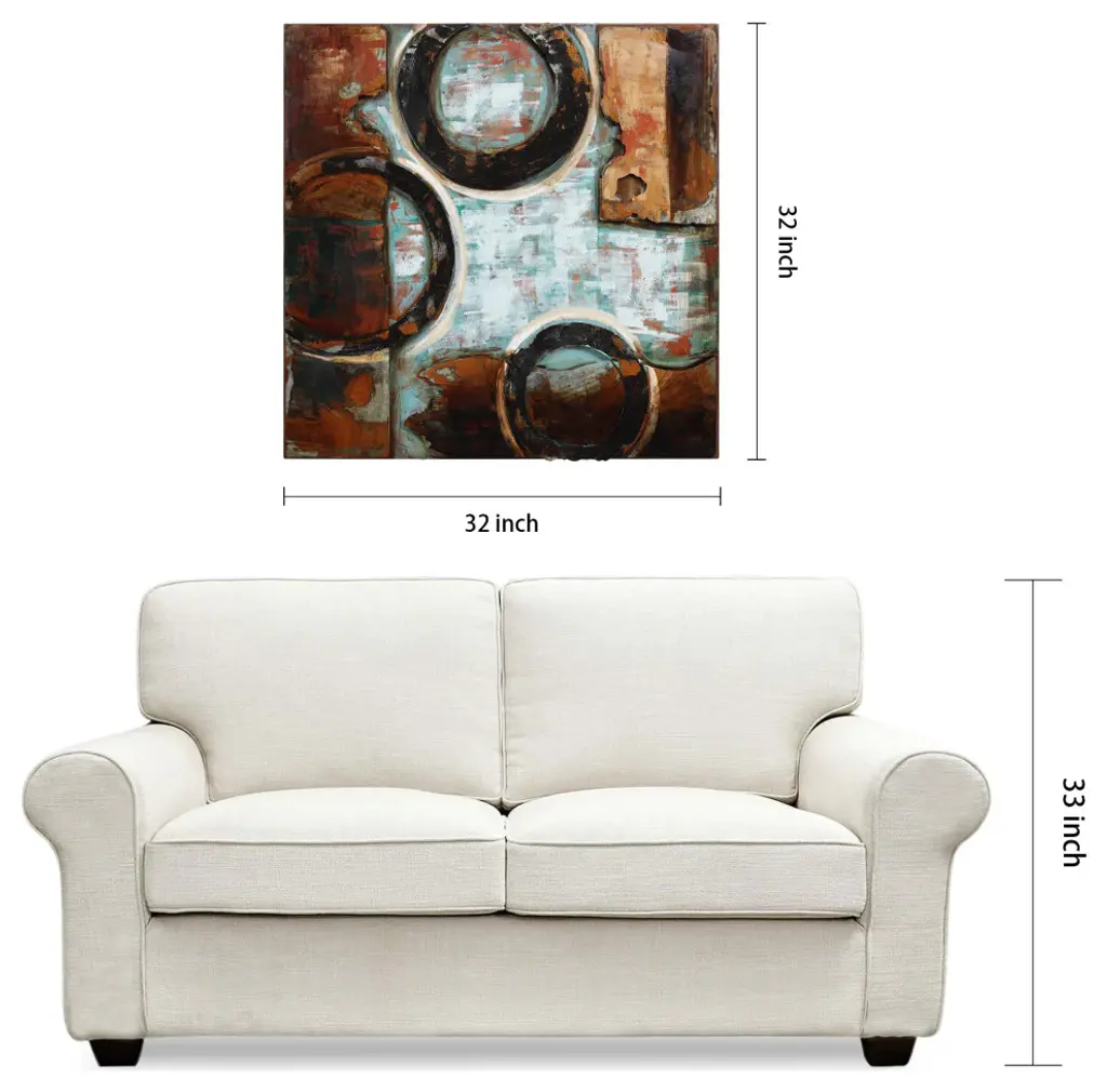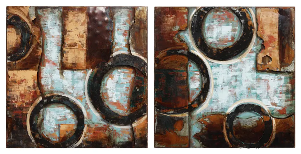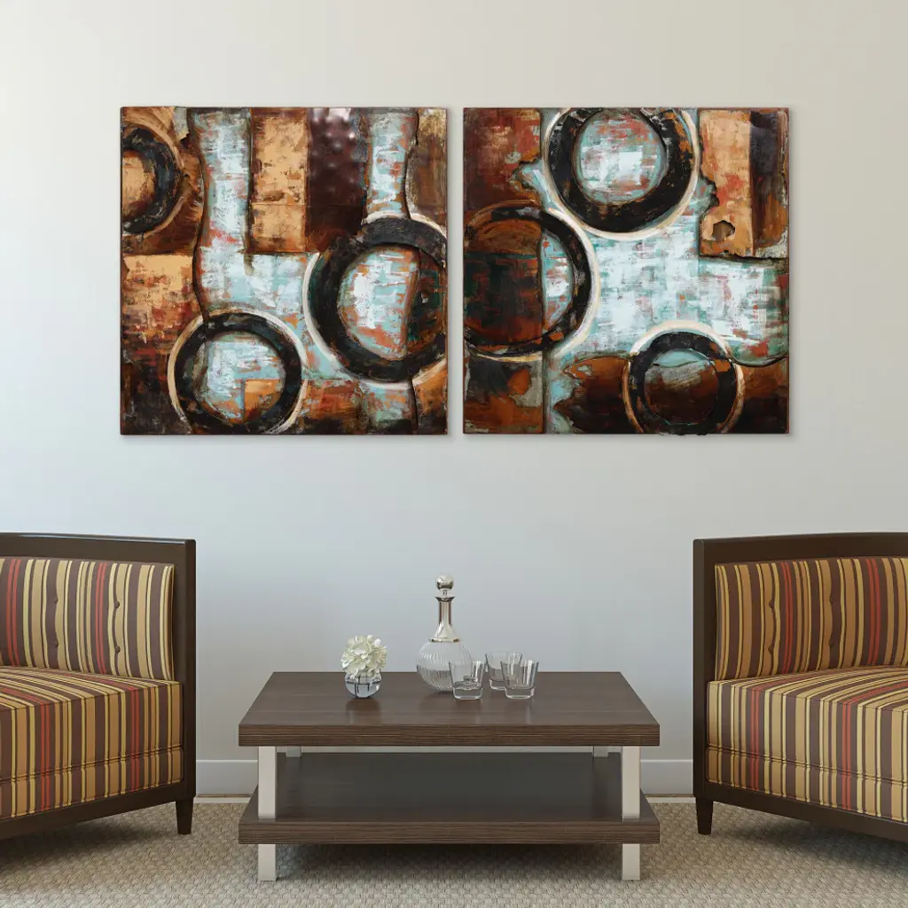 Diptych Set - 32" x 2" x 32" each. Abstract works of art like this Revolutions creation allow viewers to bring their imagination to the fore and see what they want to see. This could be something as huge as planets spinning out of control or as mundane as gears in a gearbox. Primo loves to challenge the viewer to bring their own interpretations to his work. The piece creates a perfect accent against virtually any wall and will be the focal point of anyone''s home or office.