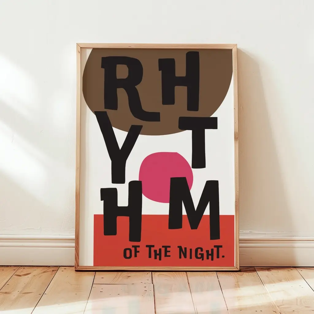 Rhythm of the night.Retro Music Music Art Print. Sold without frameGiclée printed on Munken pure smooth cream paper which is certified by the Rainforest Alliance Program for FSC® Standards.