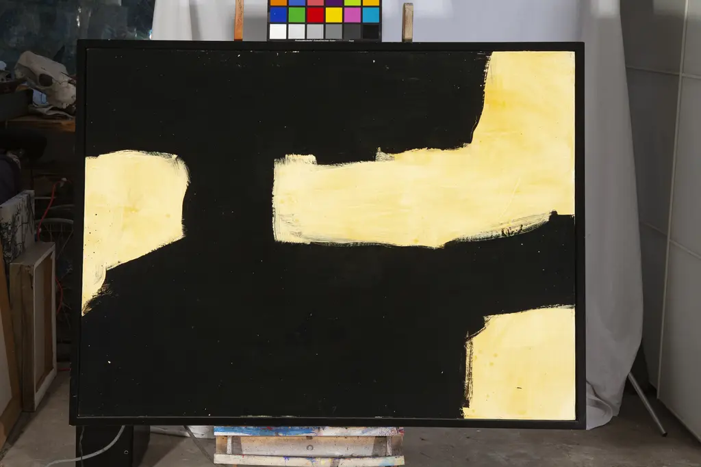 "Where the Cold Winds Blow" Framed 50 x 38 x 2.5 D 1 from a series of 3. Abstract oil painting by LA Artist, Richard Godfrey. Framed in custom black frame. “Where the cold winds blow” 2005.