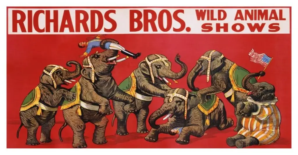 "Richards Bros. Wild Animal Shows, Ca. 1925" Paper Print By Anonymous, 74"x38"