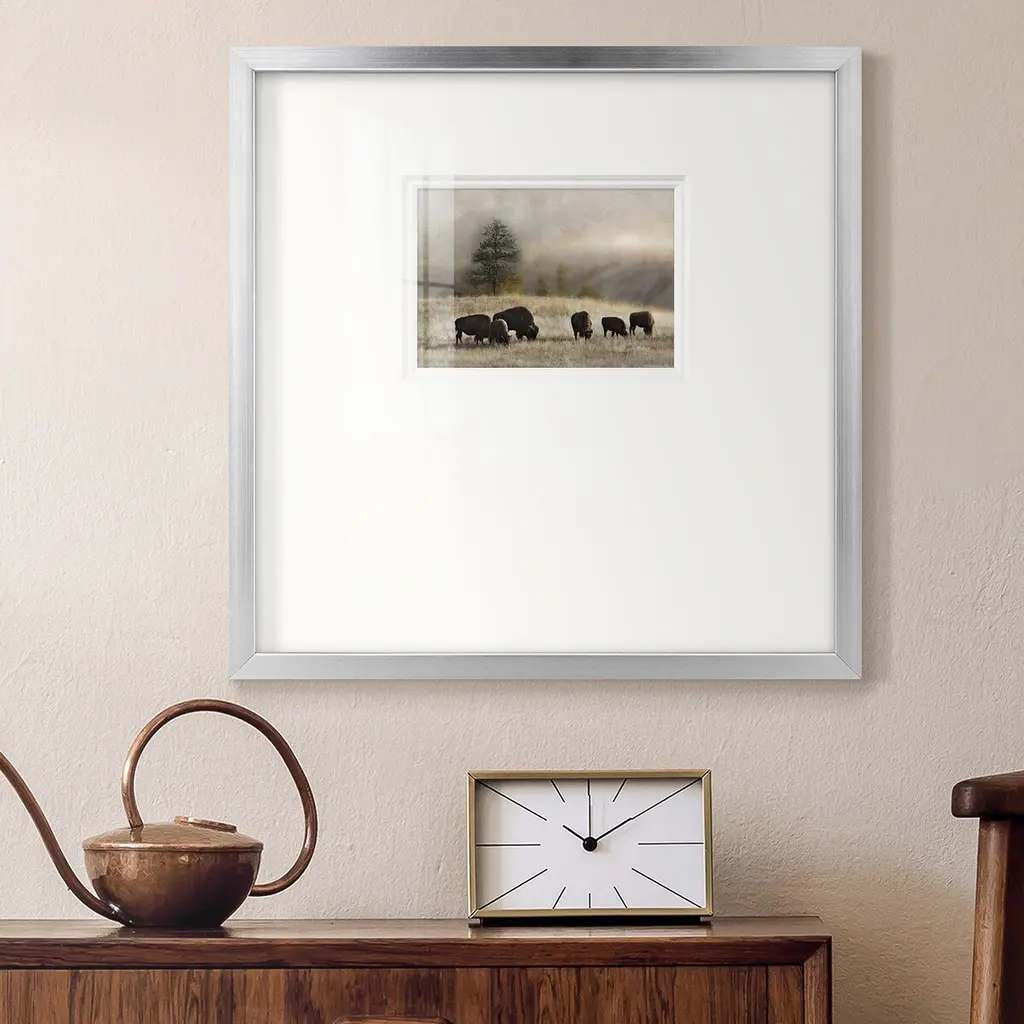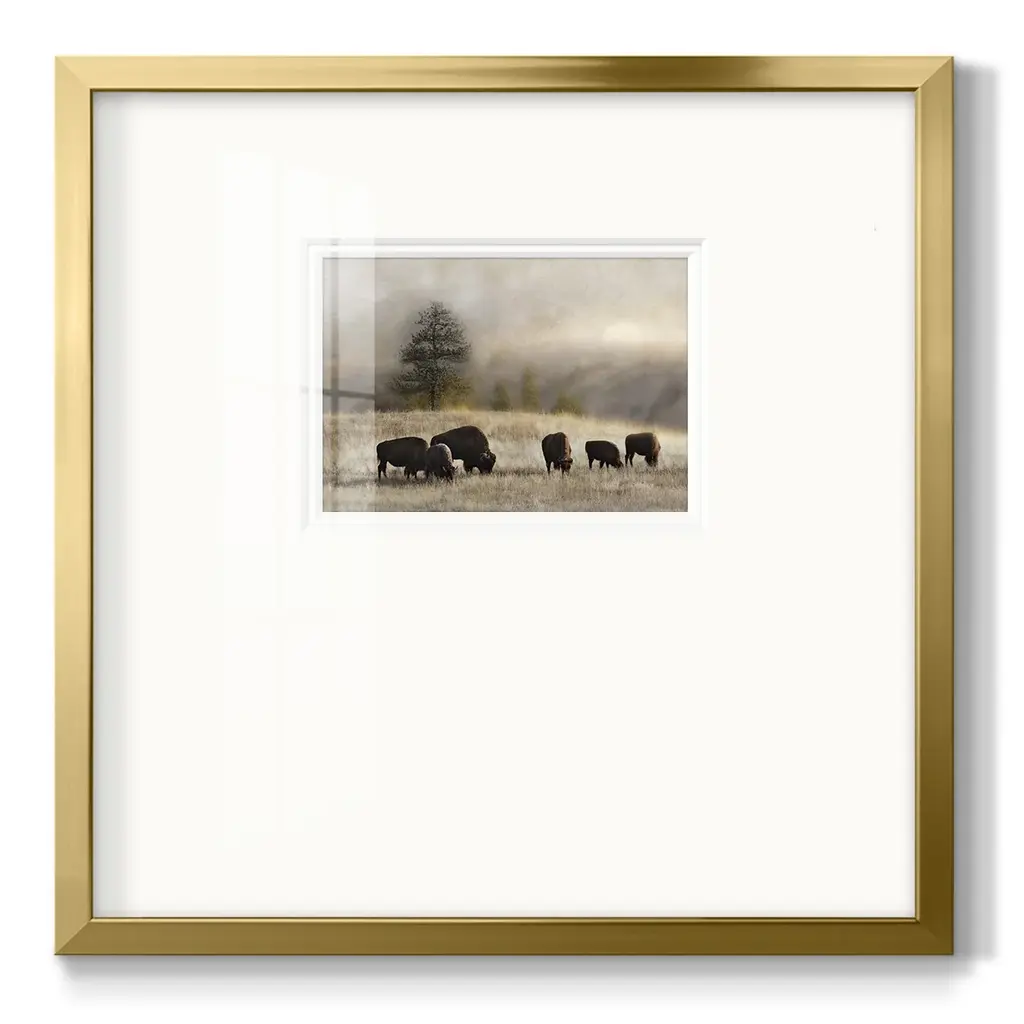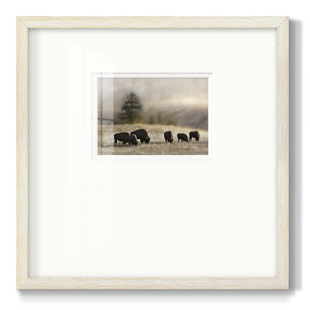 Ridge GrazingPremium Framed Print A framed cold pressed paper print featuring superior double matting and quality frame. 2 SIZES AVAILABLE 16''X16''' - Overall Size 20''X20''' - Overall Size Each piece is made to order. Each piece comes with hanging hardware. Made in the USA Ready to Hang Giclee Paper Print Plexiglass Beveled Matt Board Double Matte Board