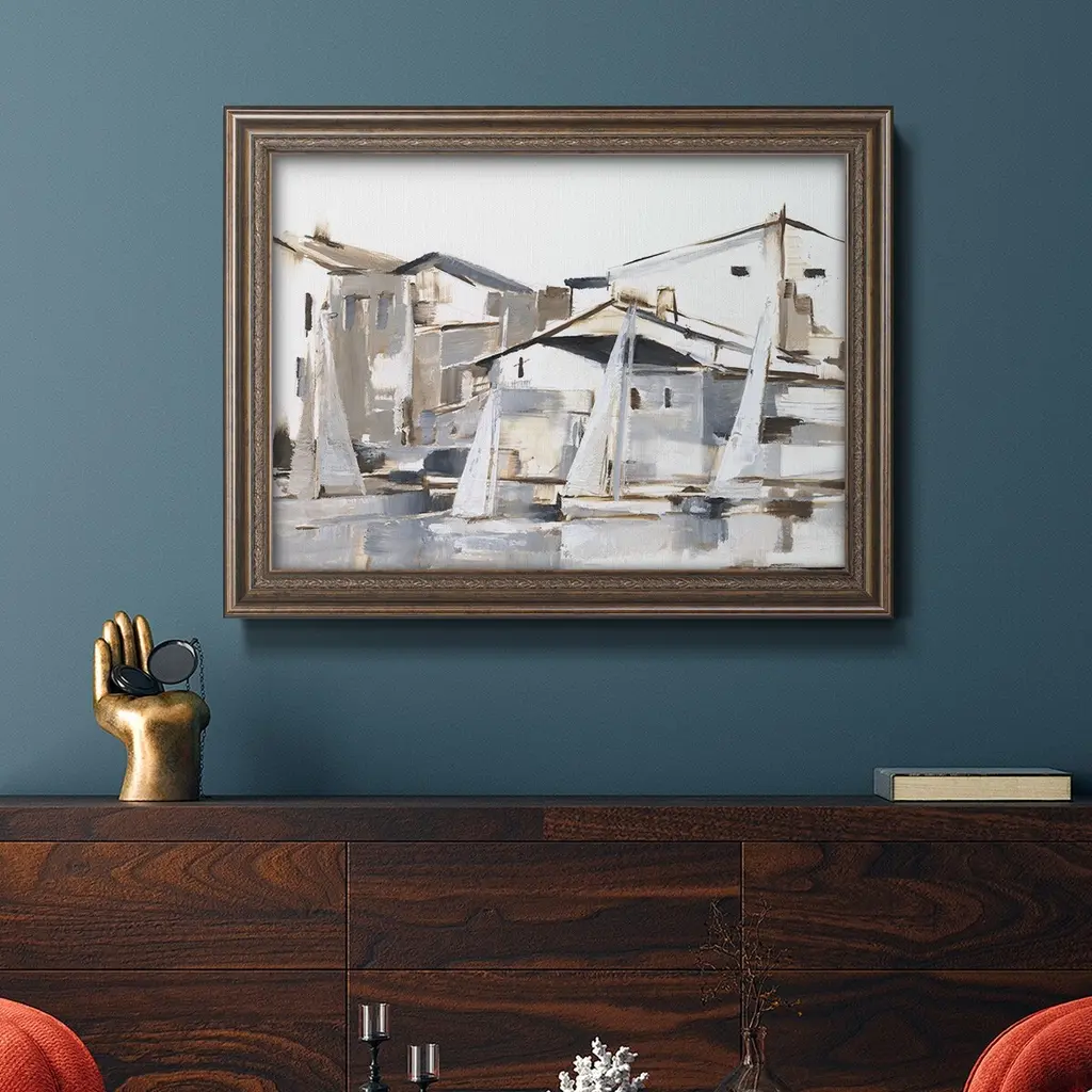 Right Conditions I Premium Framed Canvas- Ready to Hang A Premium Framed Canvas created to last. Framed in distressed wood and available in an array of sizes and colors Featuring a beveled a solid wood stretcher bar, each piece comes ready to hand 3 SIZES AVAILABLE 16''X20'' - Overall Size 18'X27'' - Overall Size 24''x36'' - Overall Size Each piece is made to order. Each piece comes with hanging hardware. Made in the USA Ready to Hang Giclee Paper Print Acrylic Glass Beveled Matt Board