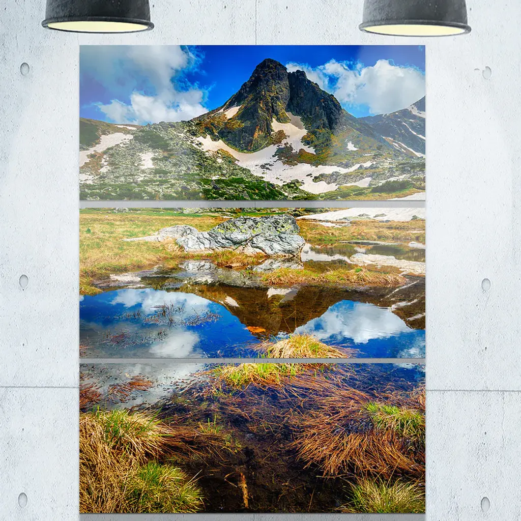 "Rila Lakes District With Reflection" Metal Wall Art, 3 Panels, 28"x36"