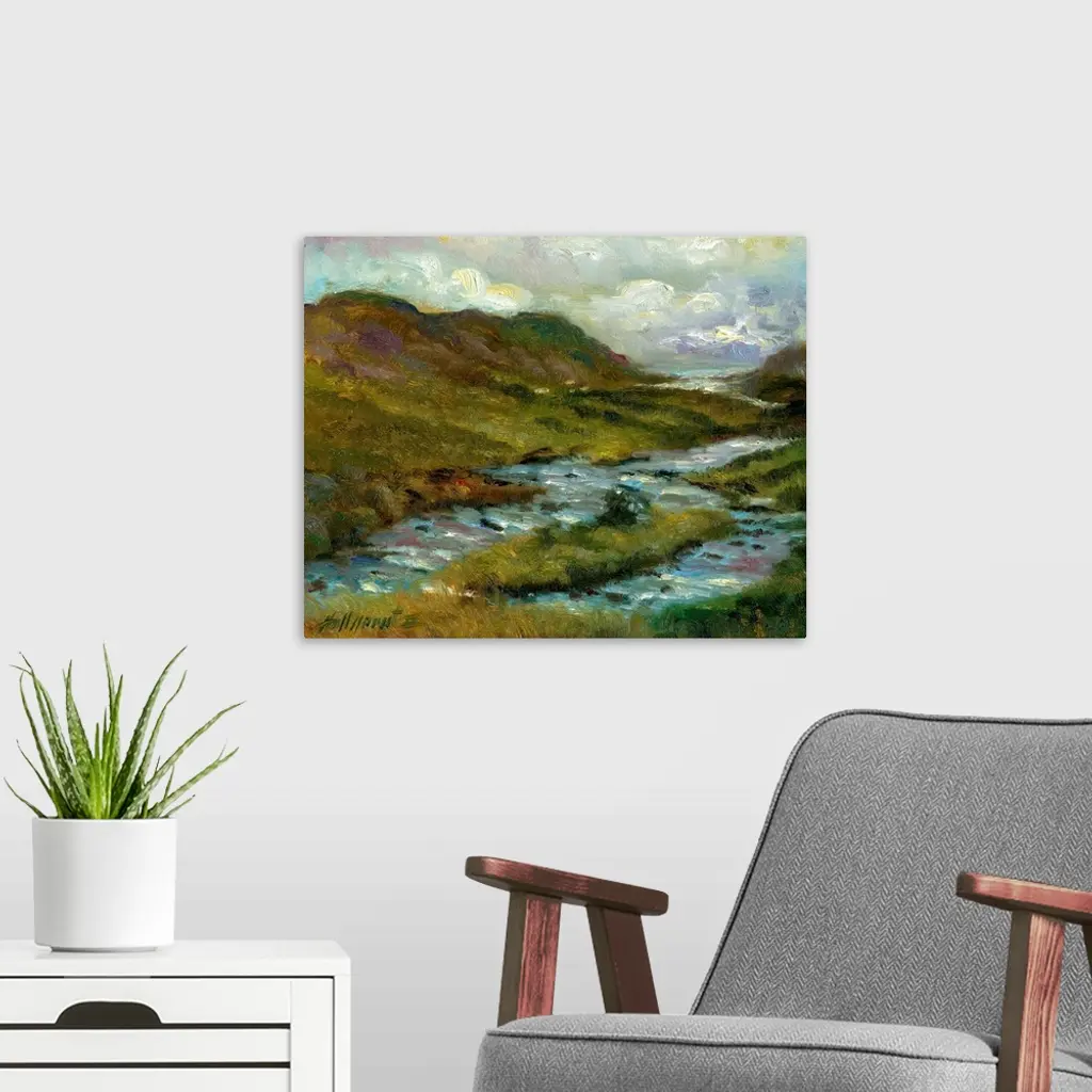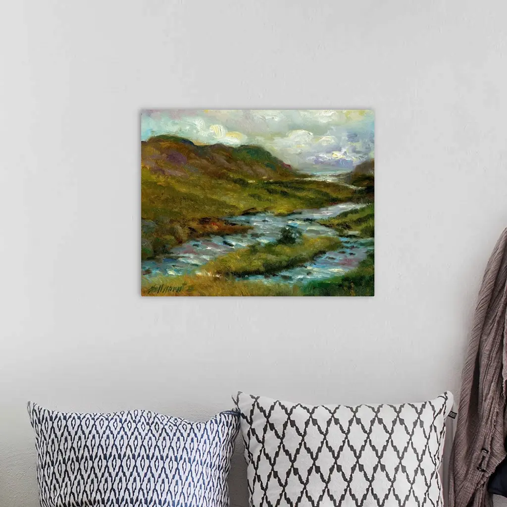 Contemporary painting of a scenic view of Irish countryside.