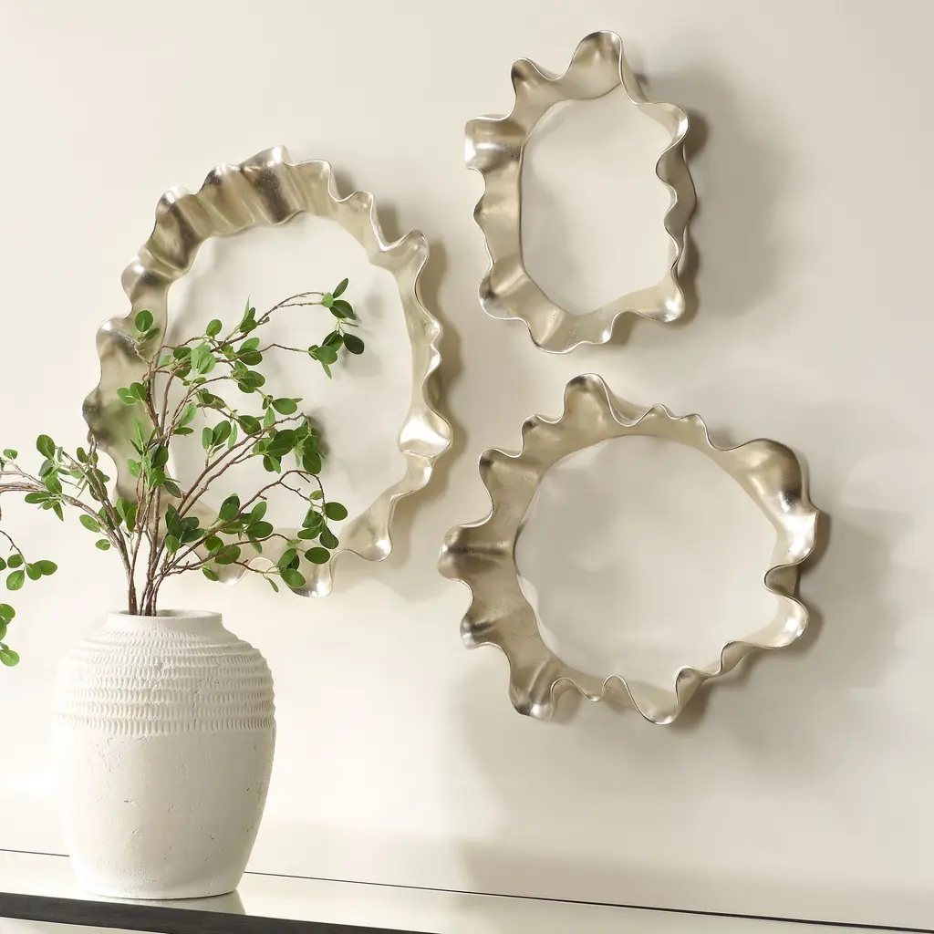 Ripple Effect Silver Leaf Wall Art, Set Of 3