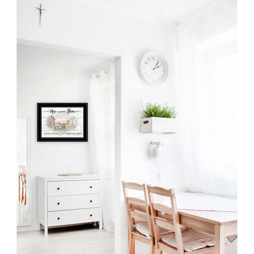 Unique and decorative, this rise and shine 8 black framed print wall art will leave a lasting impression. This print is a visual artistic expression that allows you to decorate your space in style. Reproduced for you on paper, this hanging decorative accent will be a trendy and fashionable way to dress your walls. Hang on your wall to add some up to date fashion and decoration. Utilize this opportunity to create a focal point in the room with this fabulous wall decor option. 15" H x 19" W x 1" D