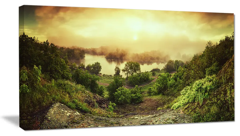 Bring contemporary abstraction to your home with this large 36W x 28H Metal Wall Art. This Rising Above the River Mist Metal Artwork makes it the focal point of any room or office. - White gloss coating ensures colors are extra vibrant with light reflection.- Aluminum grade sheet metal with 1-inch mounting frame on the back giving the illusion that the artwork is floating on the wall.- Mounting brackets are included along with instructions.- High quality digital images are created directly into a glossy aluminum panel producing a stunning and captivating print into the glossy finish of the metal.- Water, fire and scratch resistant HD aluminum panels.- Looks better than any photo paper and guaranteed to last at least 20 years- Easy to clean with a microfiber cloth. Colors are far superior to regular canvas art. - Easy to hang